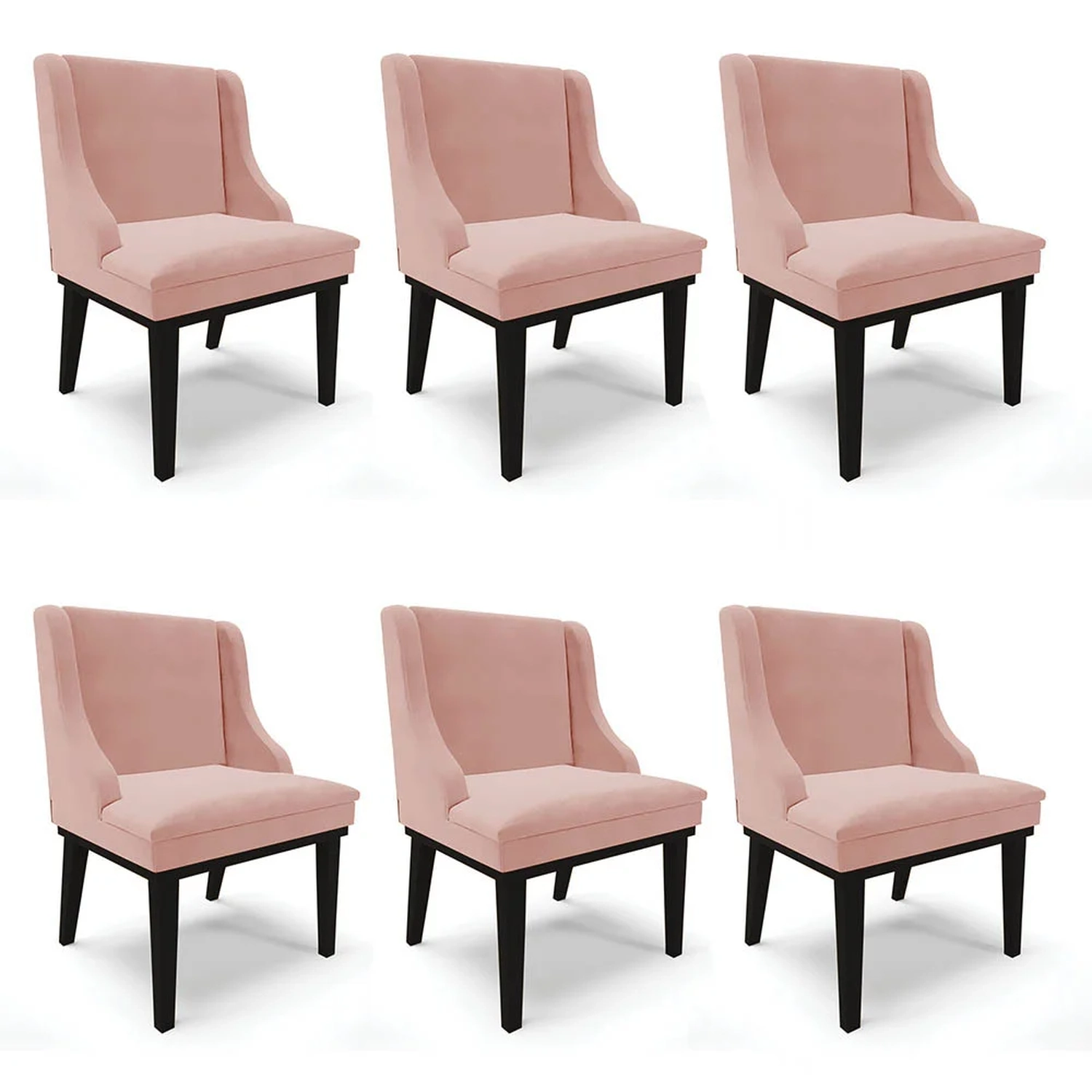 Para quem deseja unir conforto e sofisticação o Kit 6 Cadeiras Estofadas para Sala de Jantar Base Fixa de Madeira Preto Lia Veludo Rosê, da Ibiza é perfeito, vem conhecer!