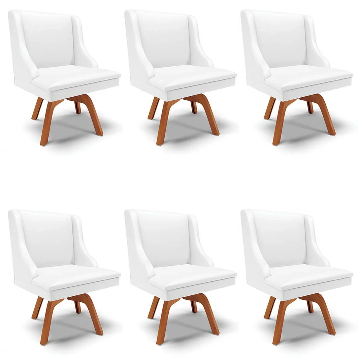Se você procura pelas Cadeiras perfeitas, acabou de encontrar! Confira o Kit 6 Cadeiras Estofadas para Sala de Jantar Base Giratória de Madeira Lia Sintético Branco, da Ibiza e encante-se!