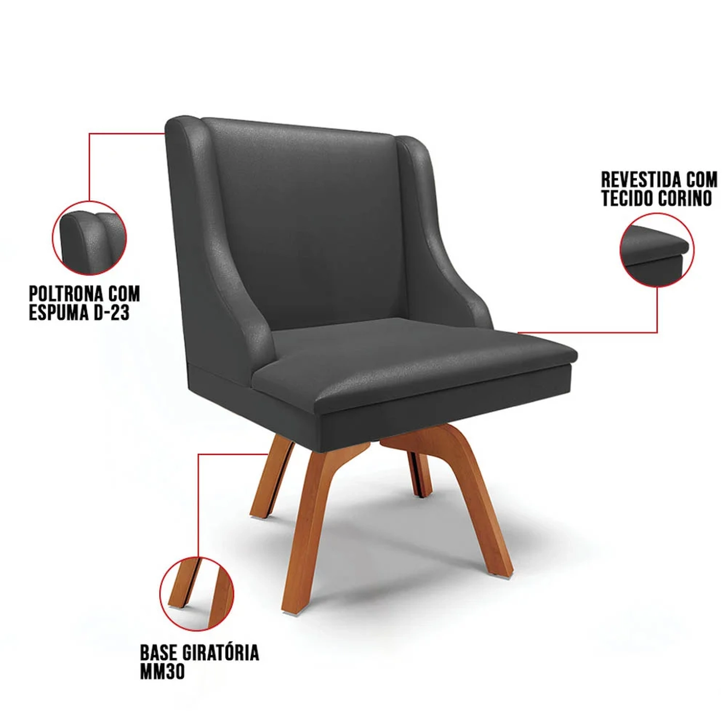 Tipo dos Pés: Base Giratória.