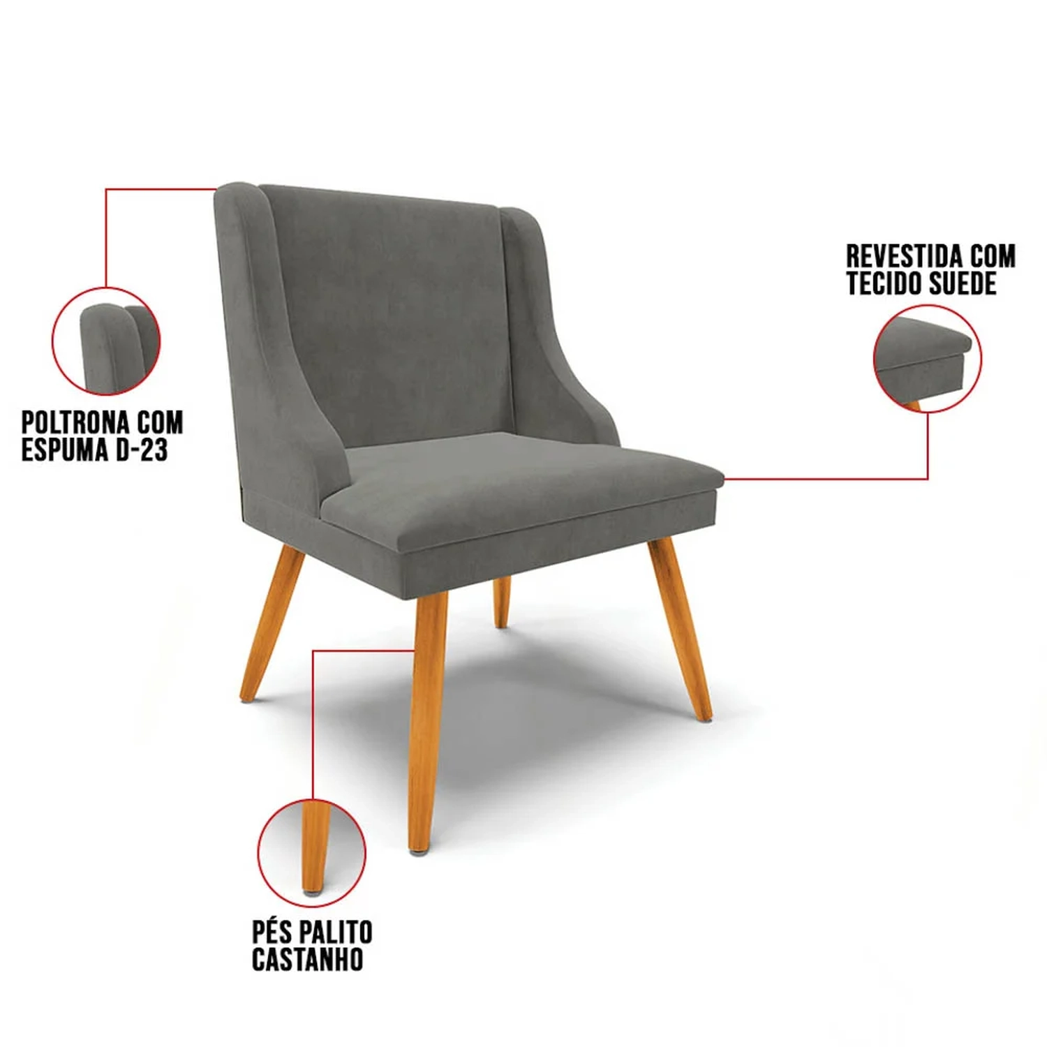 Revestimento/Tecido: Suede.