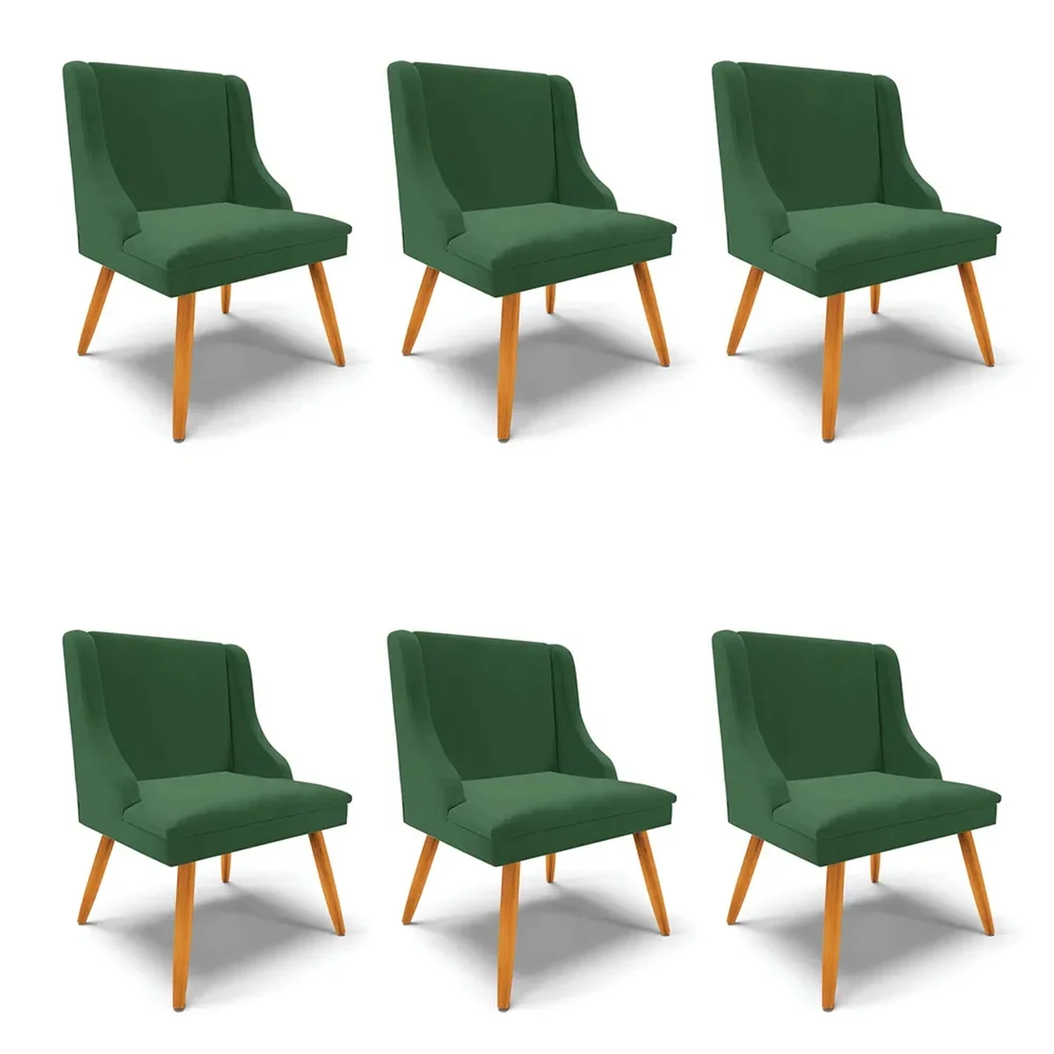 Pensando em renovar os móveis da casa? Vem conferir o Kit 6 Cadeiras Estofadas para Sala de Jantar Pés Palito Lia Veludo Verde Esmeralda, da Ibiza e encante-se!