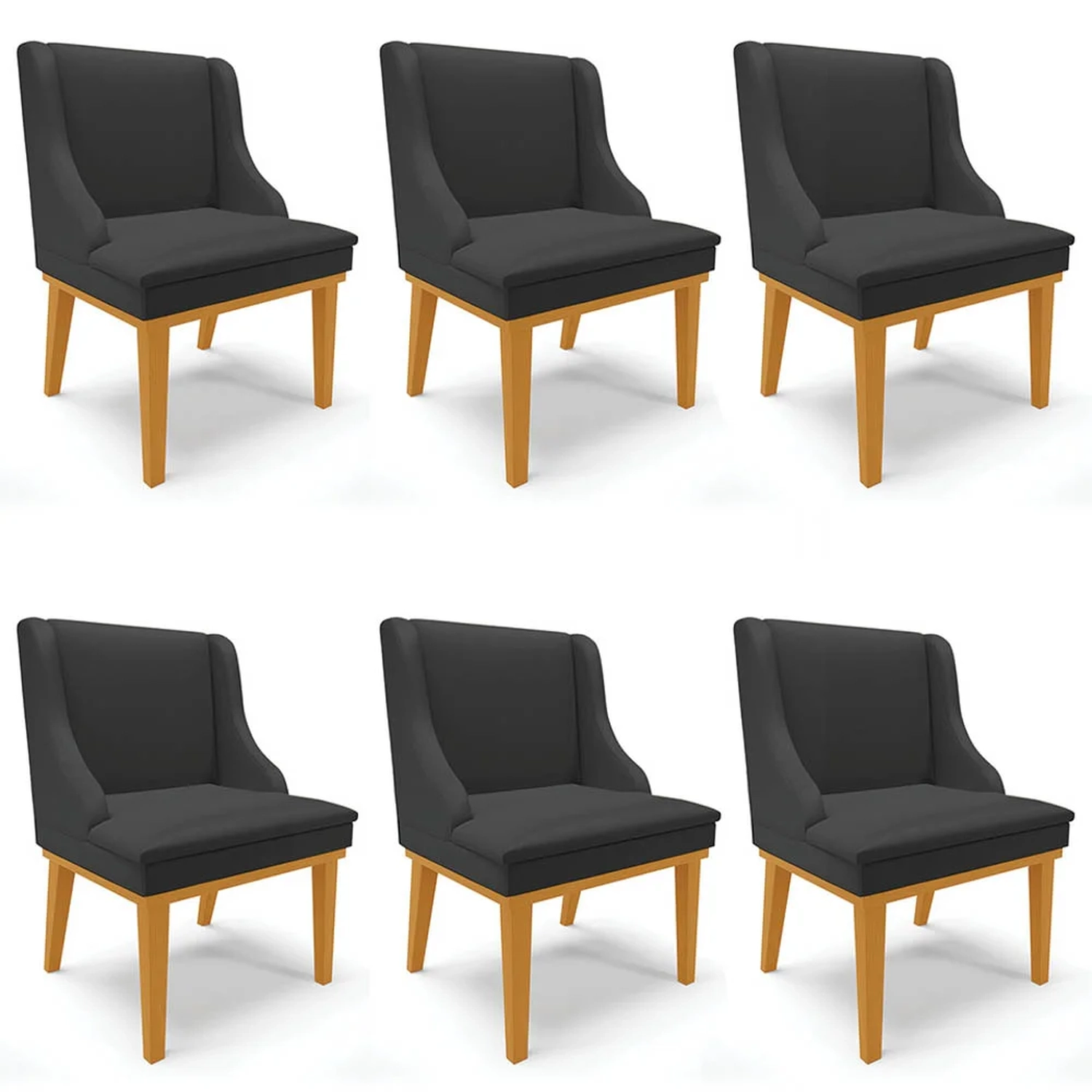 Procurando o móvel que vai fazer a diferença na Sala de Jantar? Confira o Kit 6 Cadeiras Estofadas Sala de Jantar Base Fixa de Madeira Castanho Lia Sintético Preto, da Ibiza e surpreenda-se!