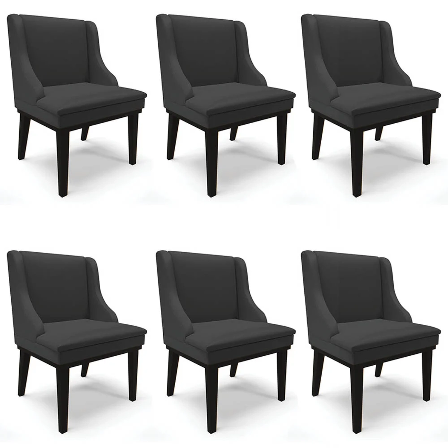 Deixe sua Sala de Jantar com o requinte e sofisticação que ela merece! Conheça o Kit 6 Cadeiras Estofadas Sala de Jantar Base Fixa de Madeira Preto Lia Sintético Preto, da Ibiza e surpreenda-se!