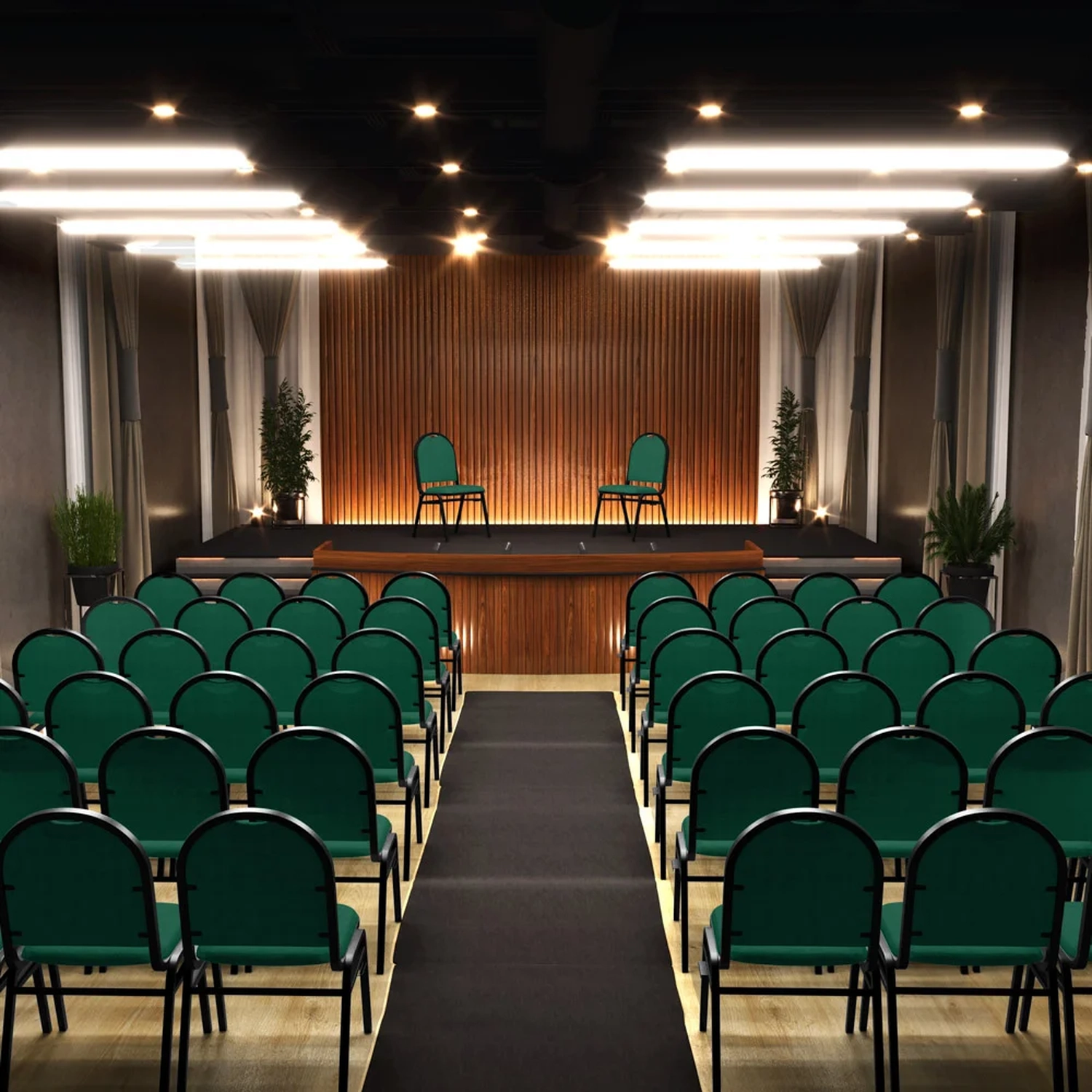 O Kit 6 Cadeiras Hoteleiras Auditório Empilhável Linho Z33 Verde, da Mpozenato, é resistente e confortável, perfeita para seu evento, vem conhecer os detalhes!