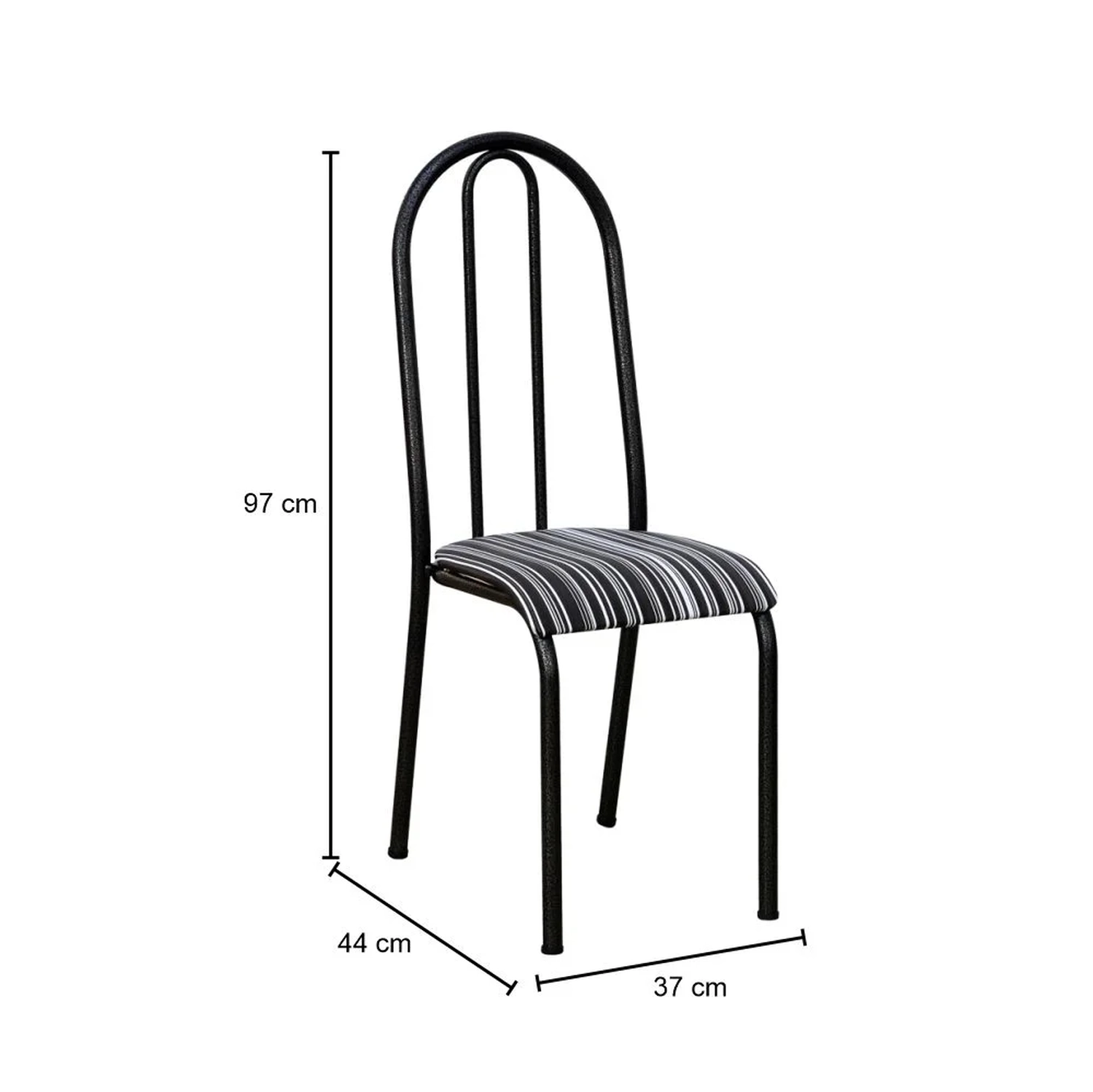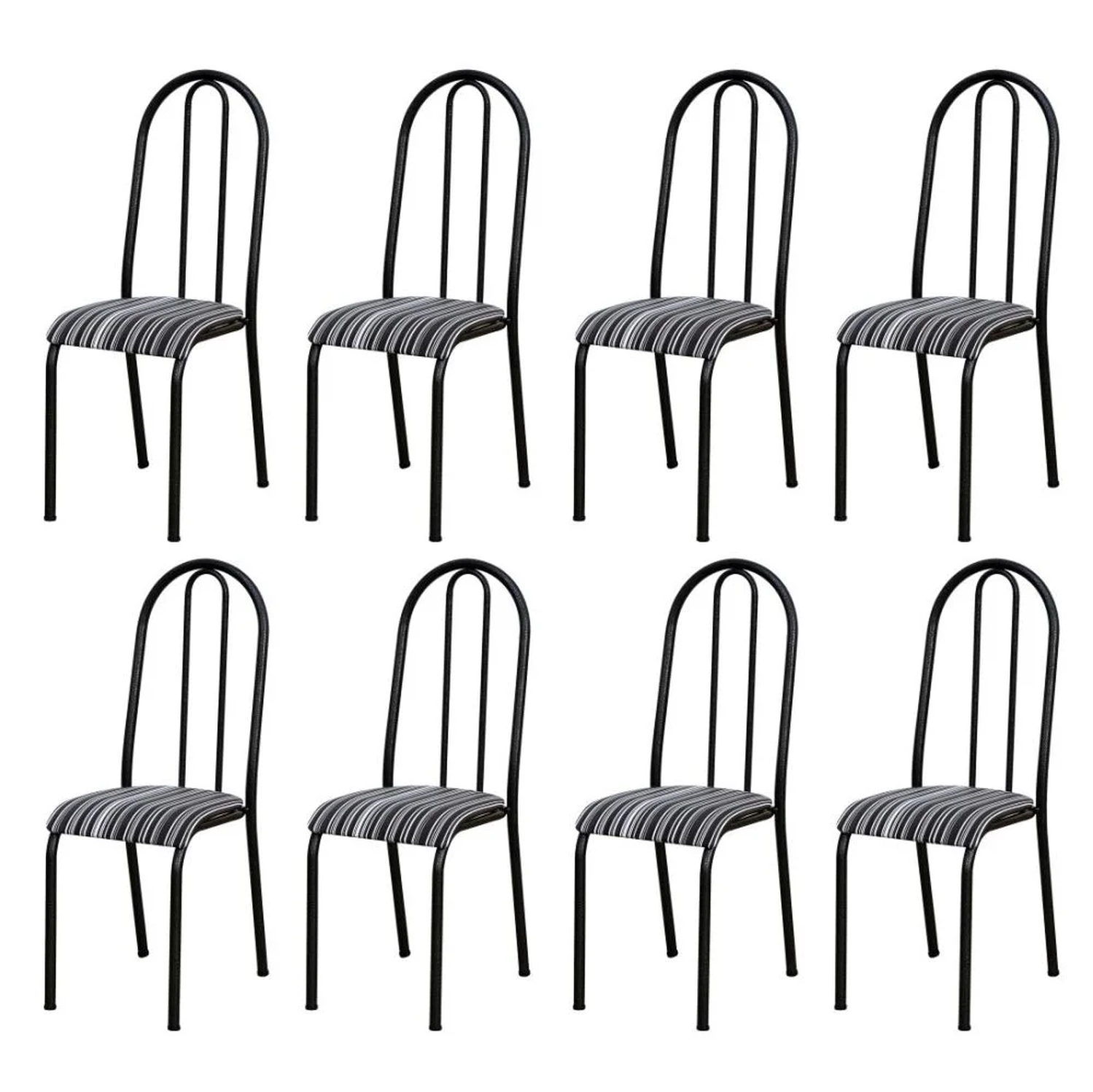 O Kit 8 Cadeiras 056 América Cromo/Preto Listrado - Artefamol, é uma excelente opção para complementar seu ambiente com estilo e qualidade, estrutura do tubo em aço carbono, acabamento em pintura epóxi, assento anatômico com revestimento de espuma e courvin. Deixe sua cozinha mais sofisticada com essas lindas cadeiras. Tá esperando o que? Leve já a sua!