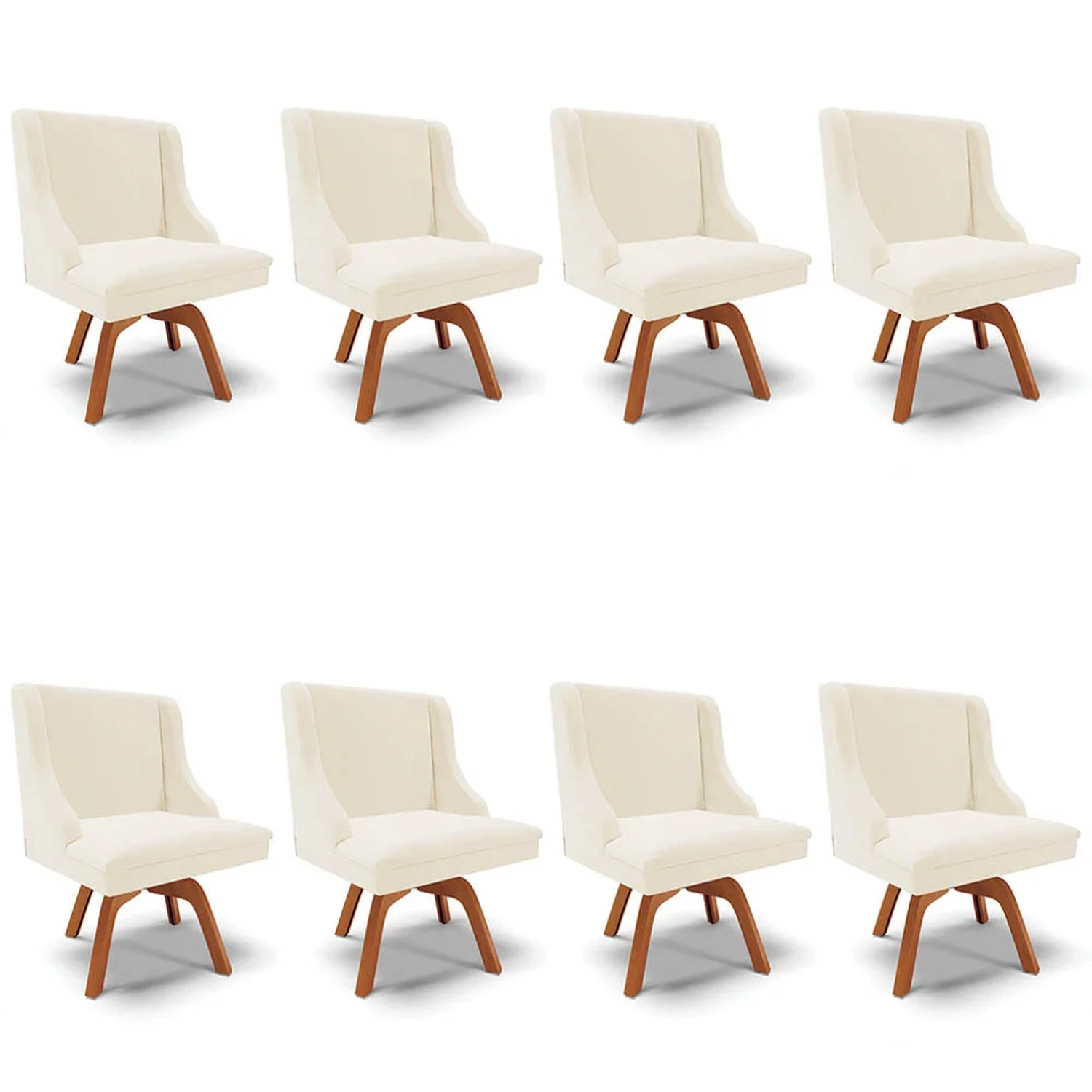 Se você procura por elegância, conforto e qualidade, nós temos exatamente o que você precisa, confira o Kit 8 Cadeiras Estofadas Base Giratória de Madeira Lia Veludo Bege da Ibiza e transforme a decoração da sua Sala de Jantar!