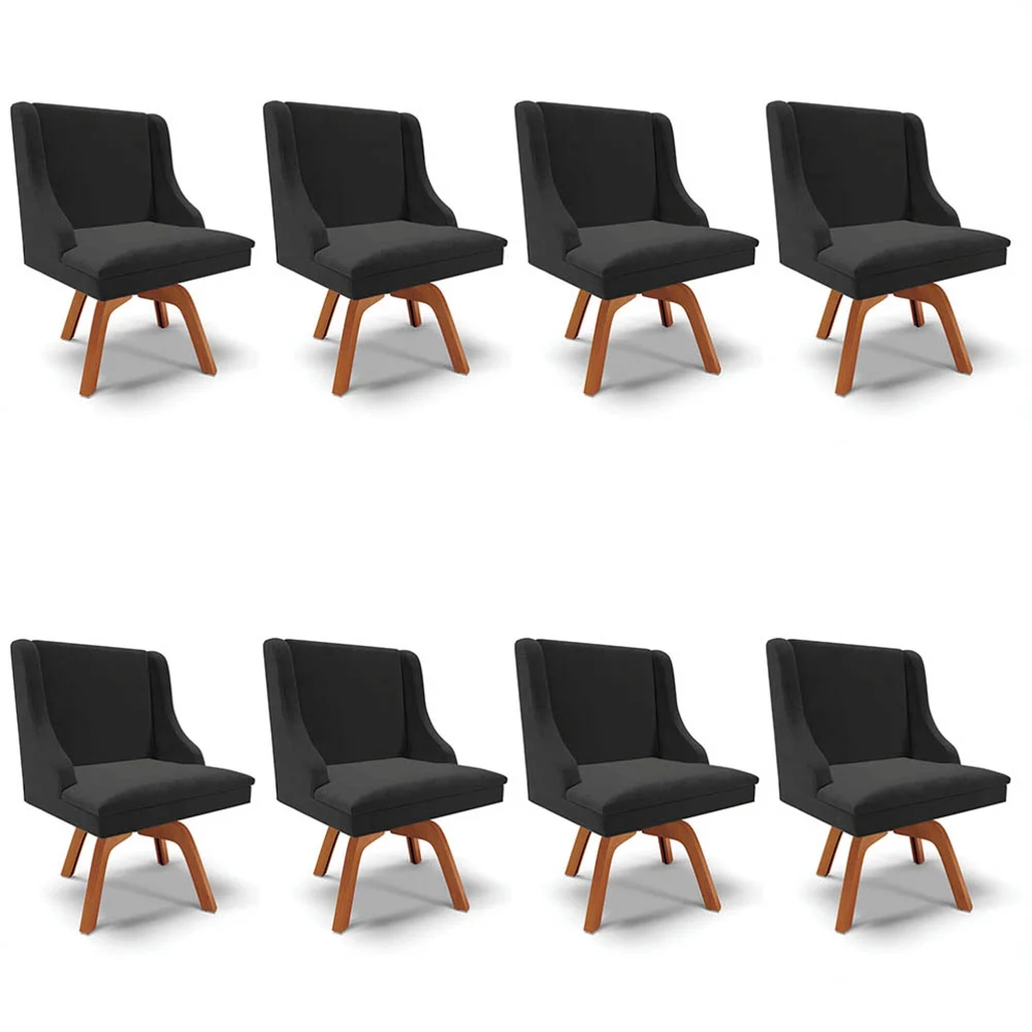 Se você procura por elegância, conforto e qualidade, nós temos exatamente o que você precisa, confira o Kit 8 Cadeiras Estofadas Base Giratória de Madeira Lia Veludo Preto da Ibiza e transforme a decoração da sua Sala de Jantar!