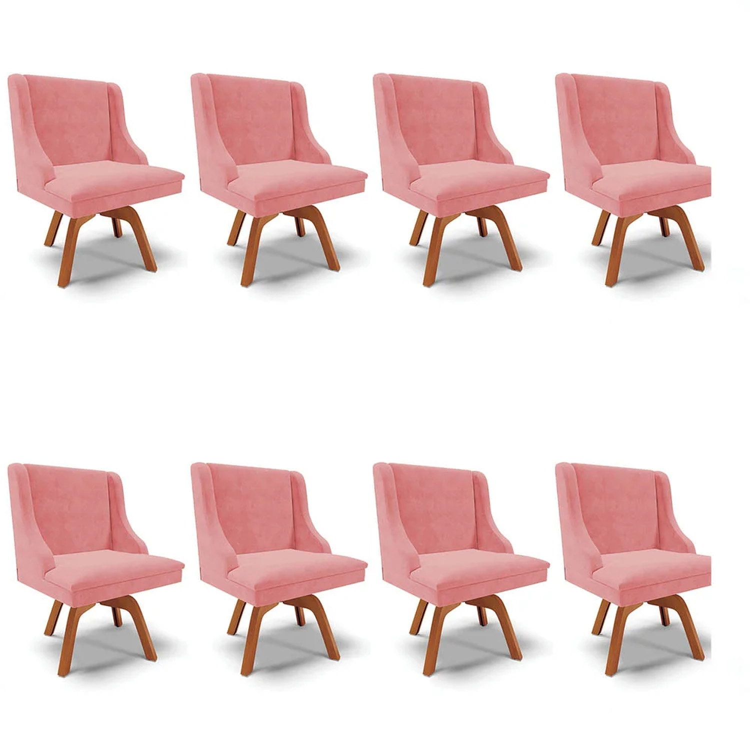 Ter uma Sala de Jantar confortável com um toque de sofisticação é possível, vem conhecer o Kit 8 Cadeiras Estofadas Giratória para Sala de Jantar Lia Suede Rosê, da Ibiza e surpreenda-se!