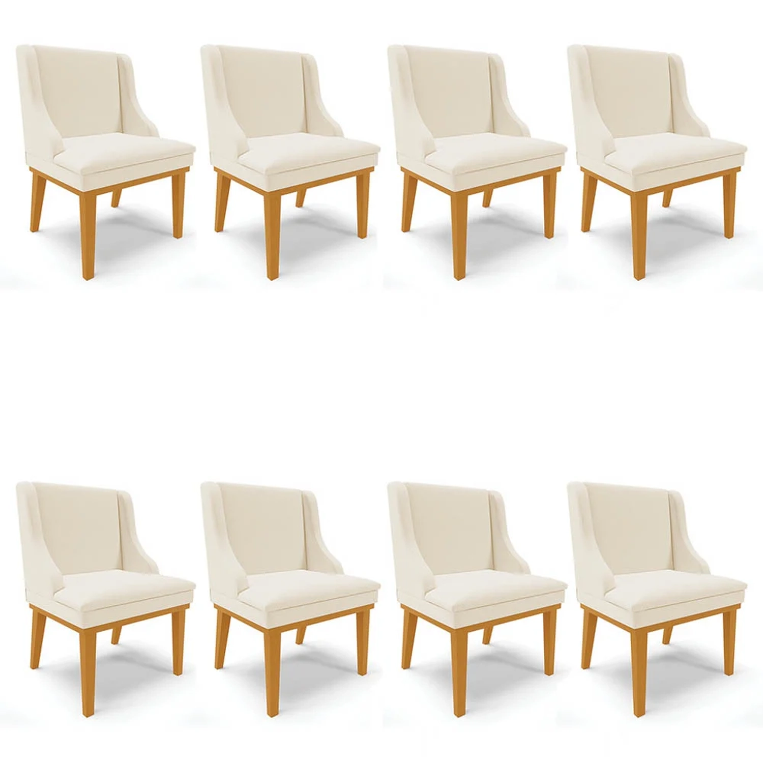 Que tal, unir conforto e beleza e deixar a sua casa mais bonita? Vem conhecer o Kit 8 Cadeiras Estofadas para Sala de Jantar Base Fixa de Madeira Castanho Lia Linho Bege, que a Ibiza preparou especialmente para você!