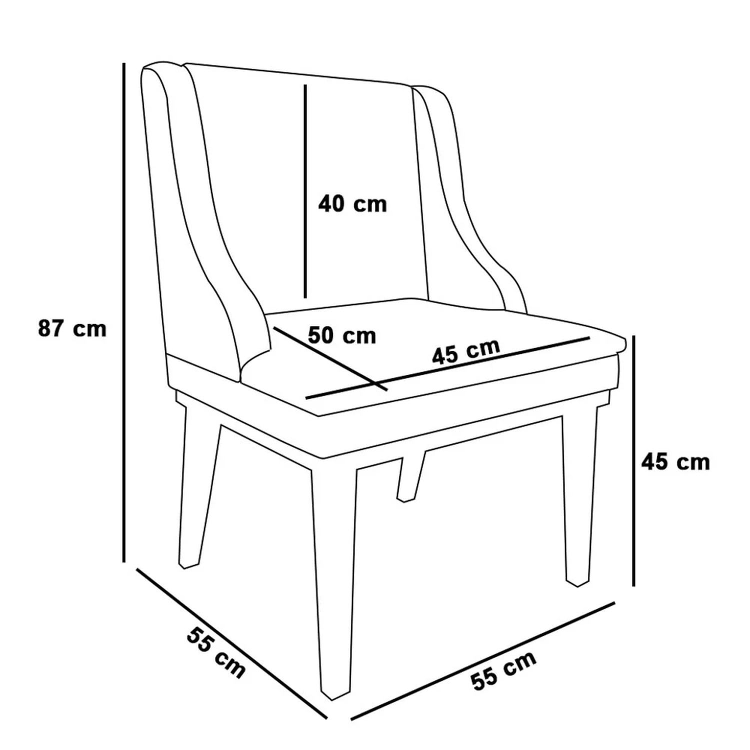 Altura do assento ao chão: 45 cm.