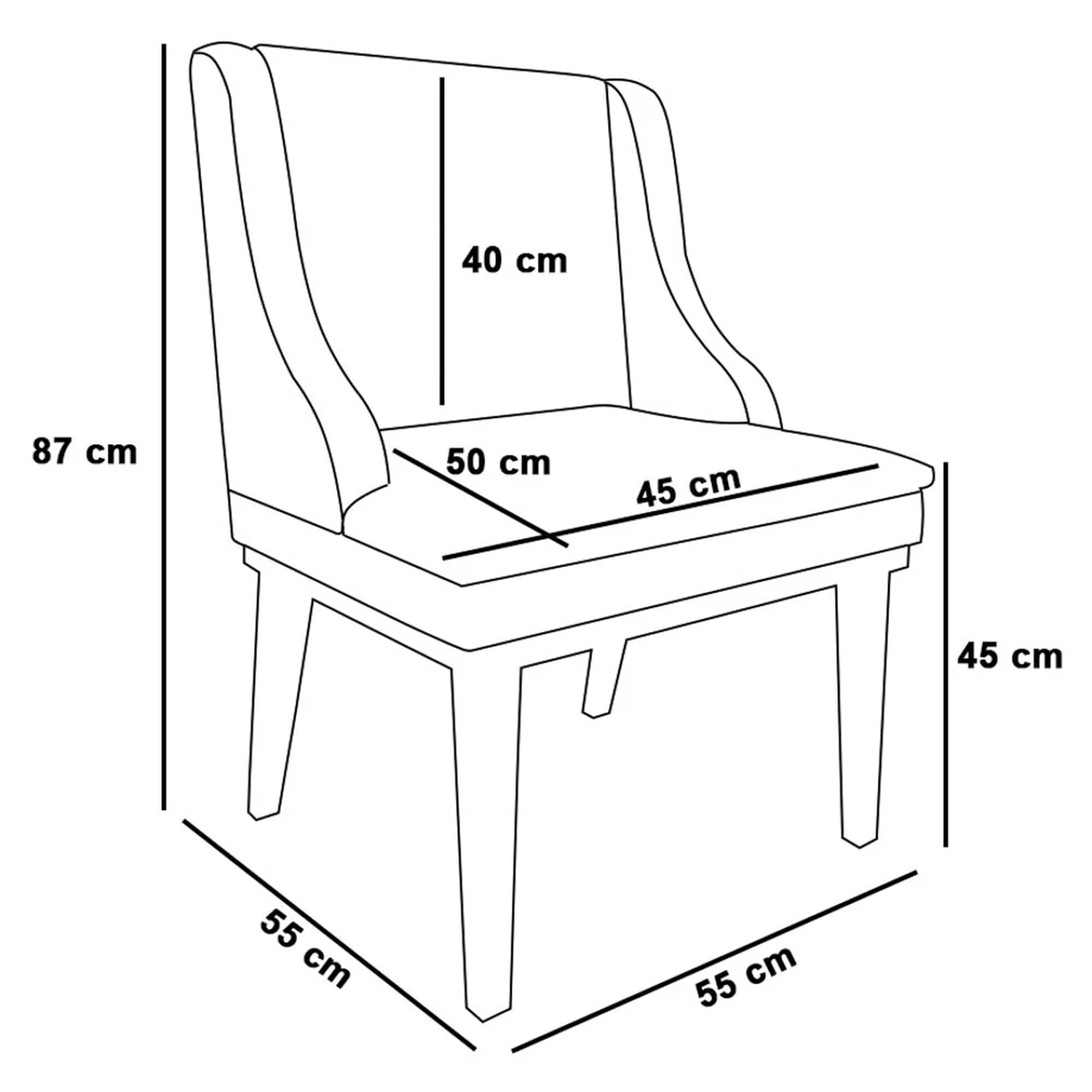 Altura do assento ao chão: 45 cm.