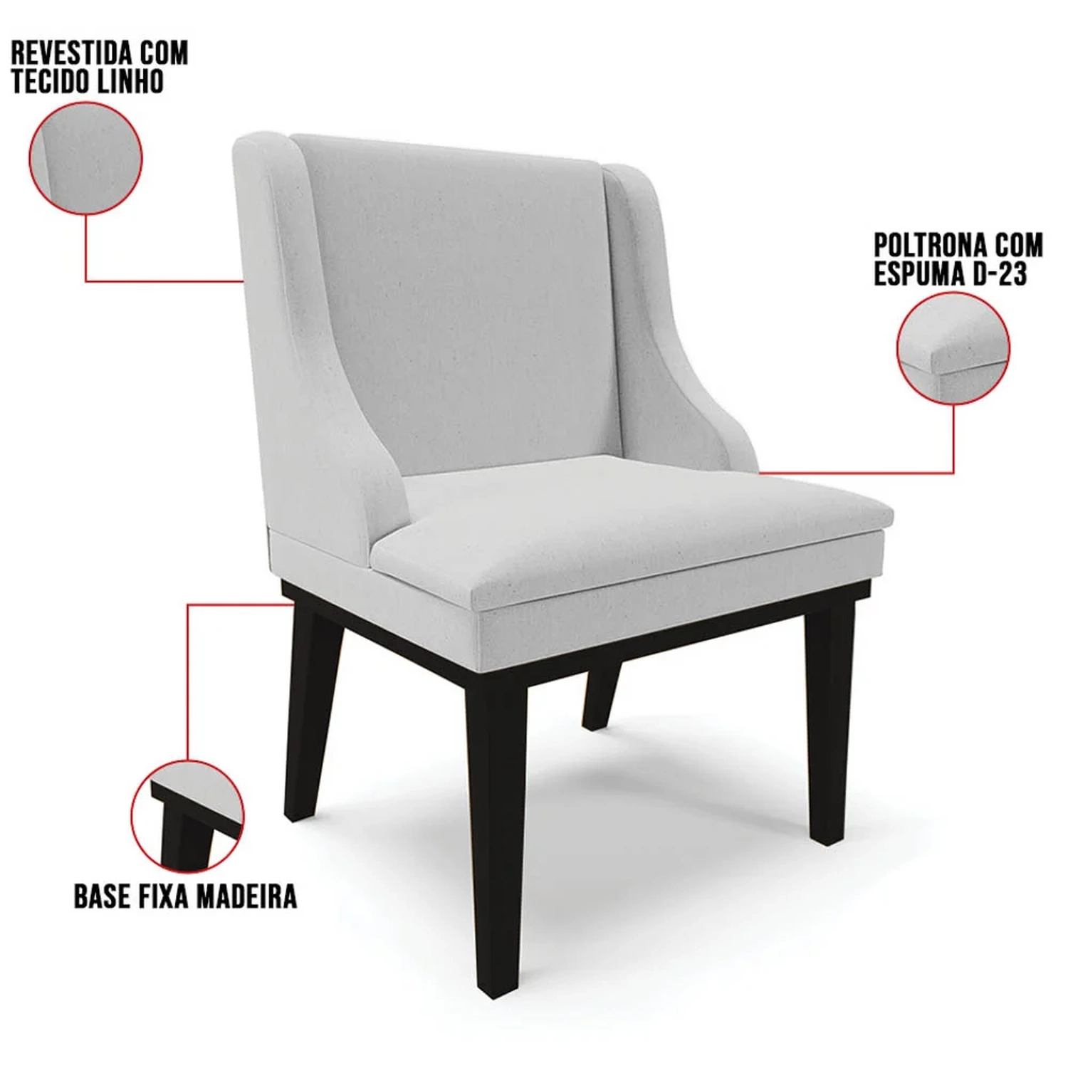 Revestimento/Tecido: Linho.