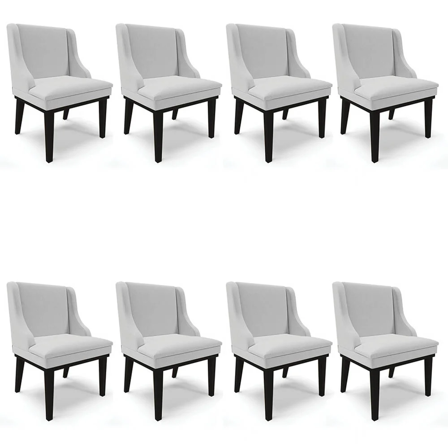 Procurando conforto e praticidade? Confira o Kit 8 Cadeiras Estofadas para Sala de Jantar Base Fixa de Madeira Preto Lia Linho Cinza, da Ibiza.