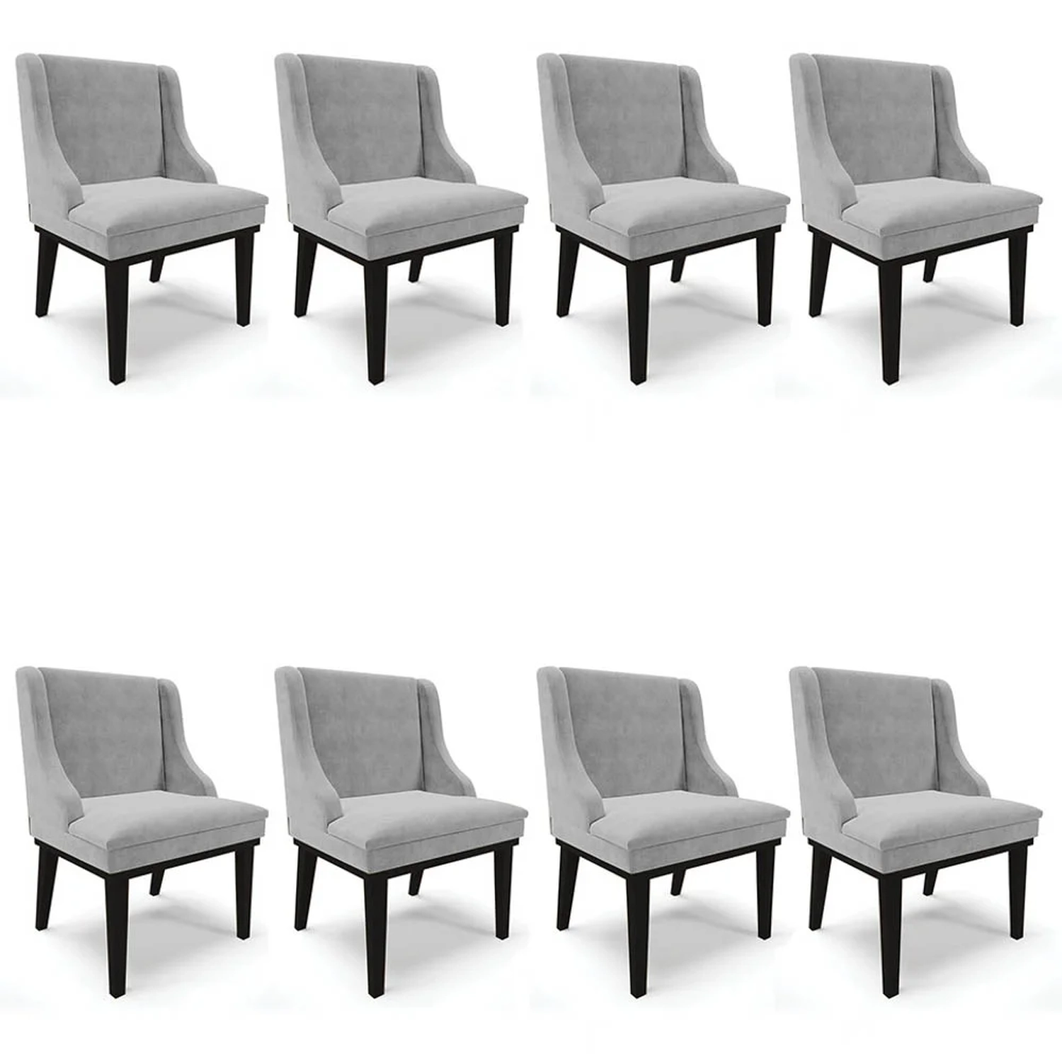 Nada melhor que estar acomodado com uma bela Cadeira confortável, por isso, a Ibiza desenvolveu o Kit 8 Cadeiras Estofadas para Sala de Jantar Base Fixa de Madeira Preto Lia Suede Cinza, confira os detalhes!