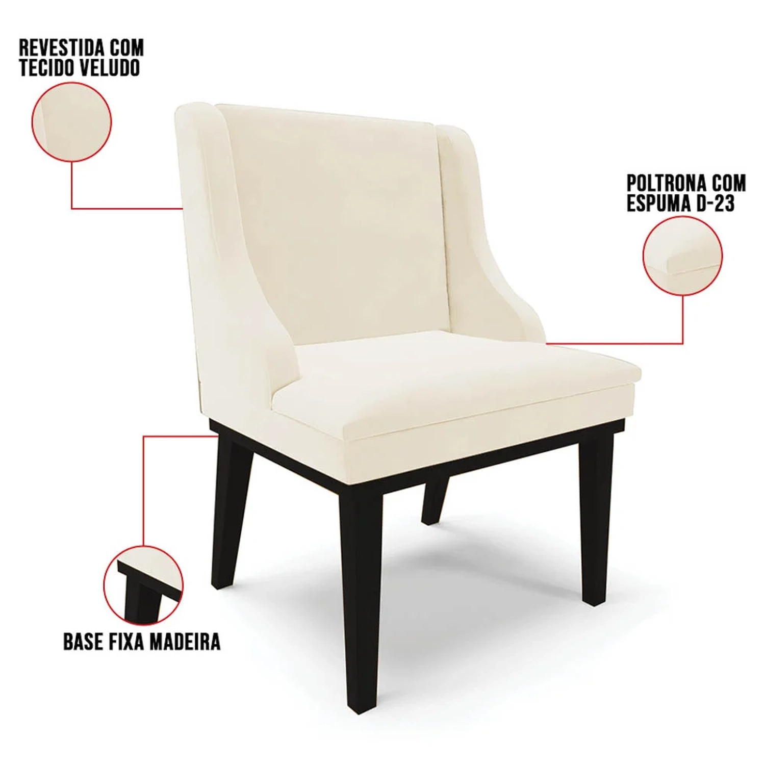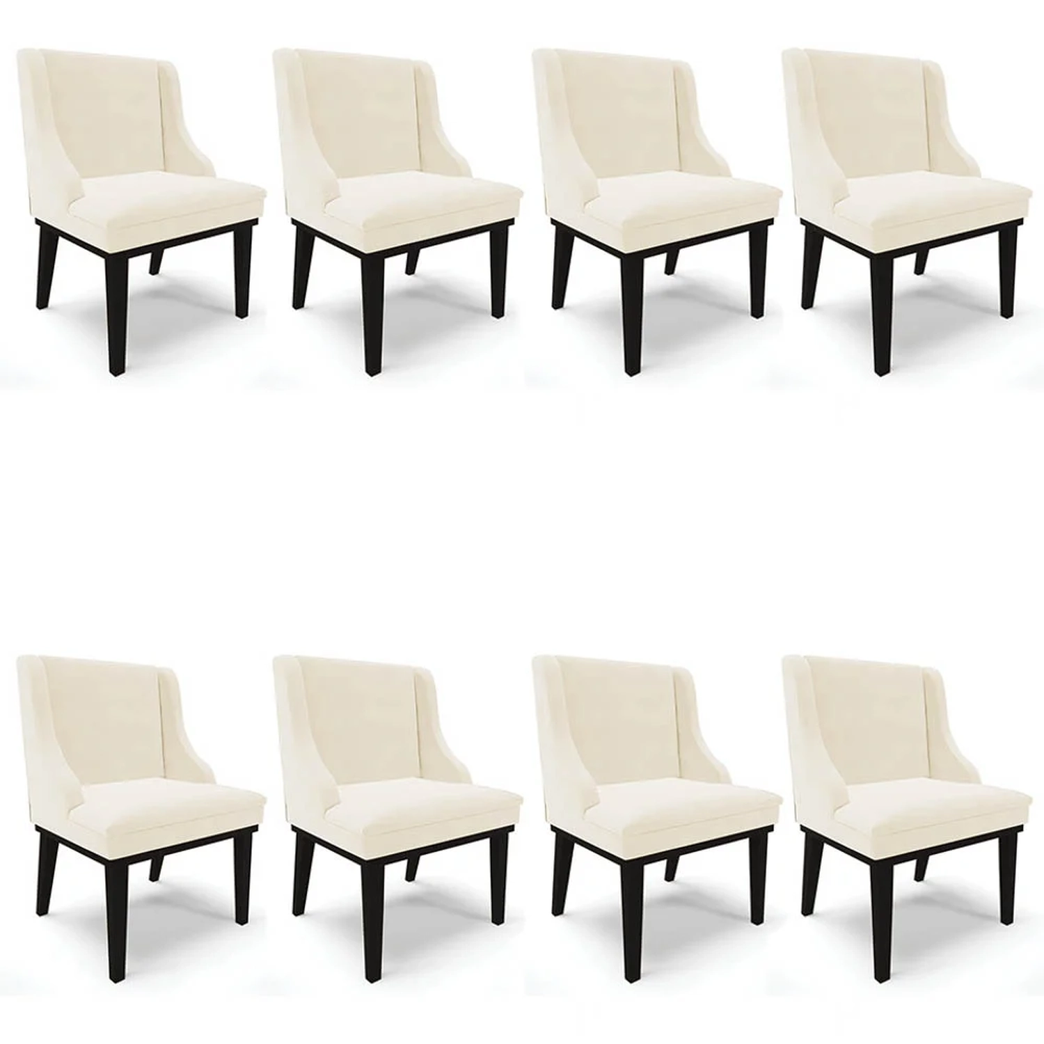 O Kit 8 Cadeiras Estofadas para Sala de Jantar Base Fixa de Madeira Preto Lia Veludo Bege, da Ibiza, vai deixar a sua Sala de Jantar um espetáculo, confira!