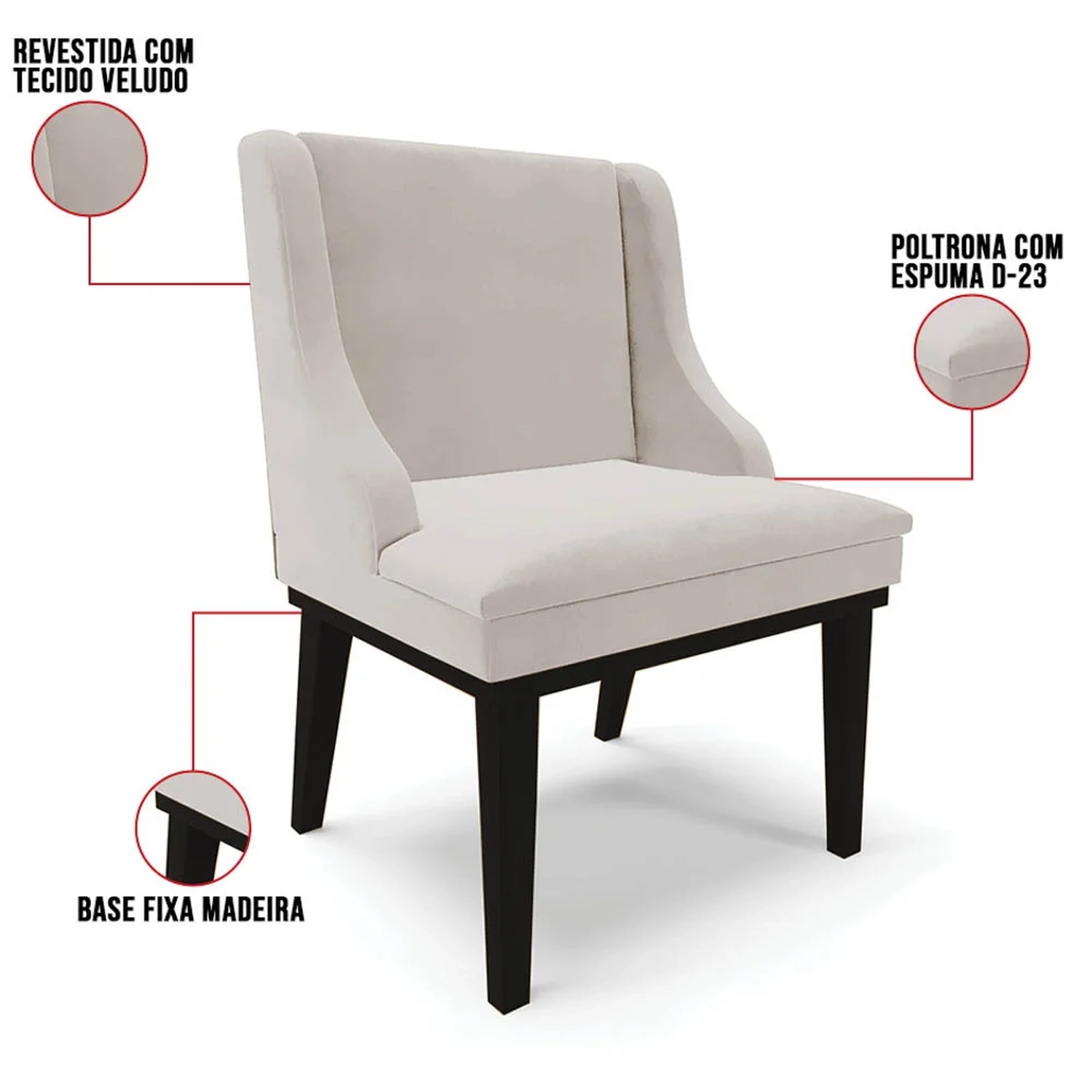 Sentar ao redor da mesa e saborear uma ótima refeição com quem amamos é um dos momentos que guardamos na memória com muito carinho, por isso, é importante compor a Sala de Jantar com móveis de alta qualidade e conforto. Pensando nisso, a Ibiza criou o Kit 8 Cadeiras Estofadas Lia, confortáveis e resistentes, cada cadeira suporta até 120 Kg! Além disso, o aconchego é garantido pela espuma macia densidade D-23, revestimento em Veludo, tecido agradável ao toque, durável e transmite sofisticação. Toda a estrutura é fabricada em Madeira Eucalipto, ecologicamente correta, agregando durabilidade ao móvel.
