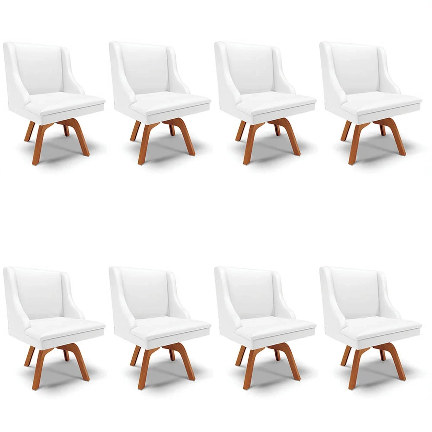 Quer dar um toque de elegância e sofisticação na sua casa? Confira o Kit 8 Cadeiras Estofadas para Sala de Jantar Base Giratória de Madeira Lia Sintético Branco, da Ibiza e surpreenda-se!