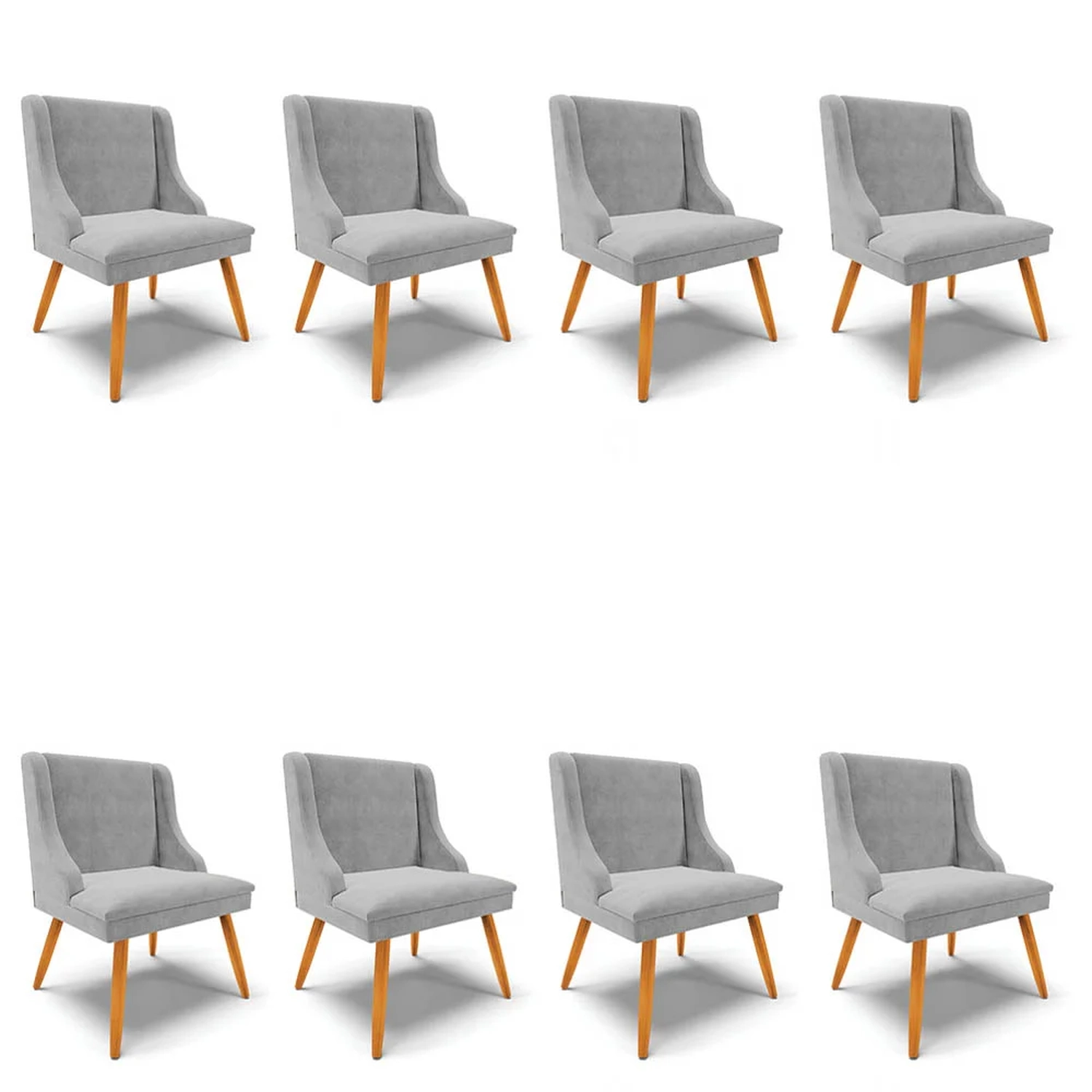 Elegância e sofisticação? Nós temos por aqui, conheça o Kit 8 Cadeiras Estofadas para Sala de Jantar Pés Palito Lia Suede Cinza, da Ibiza e surpreenda-se!