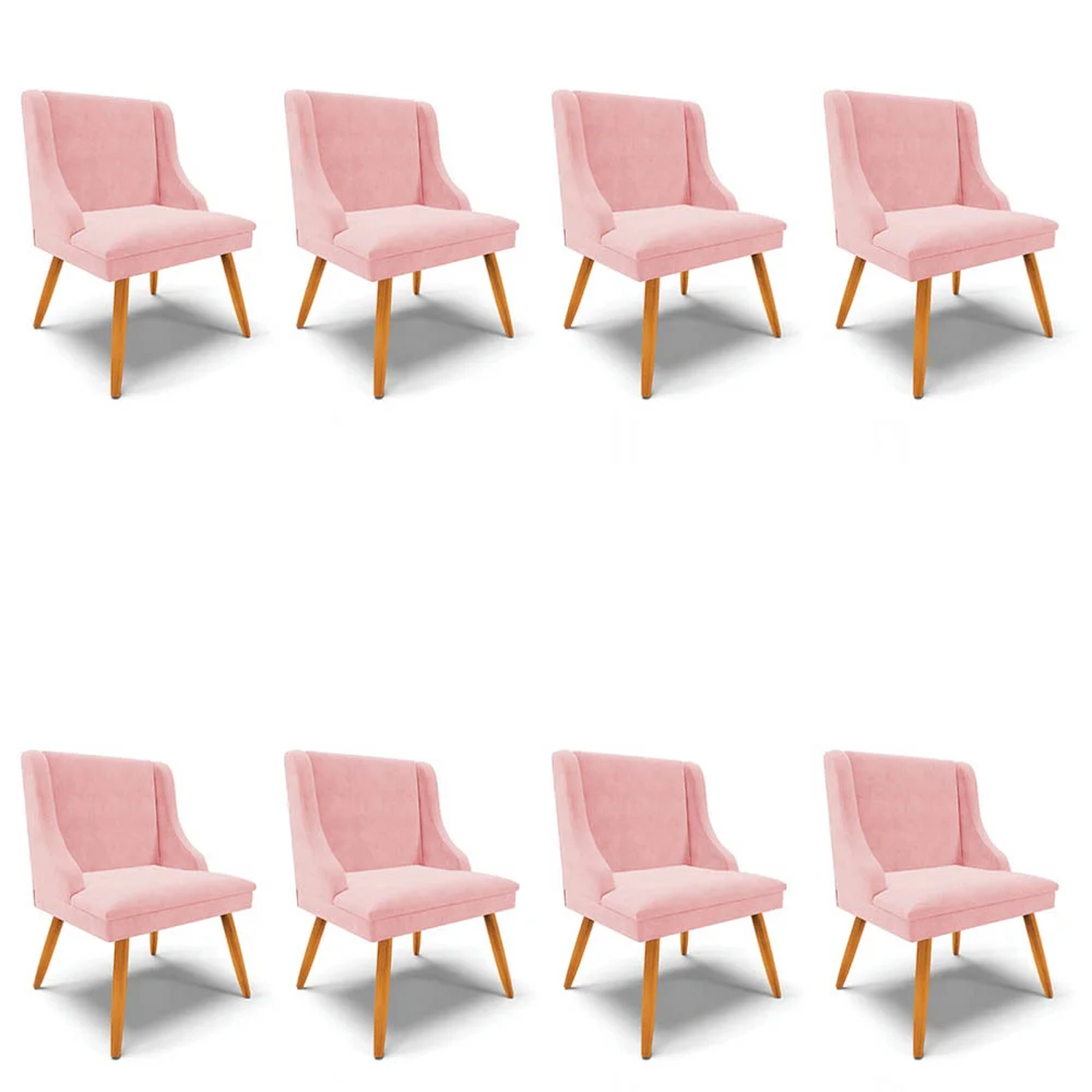Elegância e sofisticação? Nós temos por aqui, conheça o Kit 8 Cadeiras Estofadas para Sala de Jantar Pés Palito Lia Suede Rosa Bebê, da Ibiza e surpreenda-se!