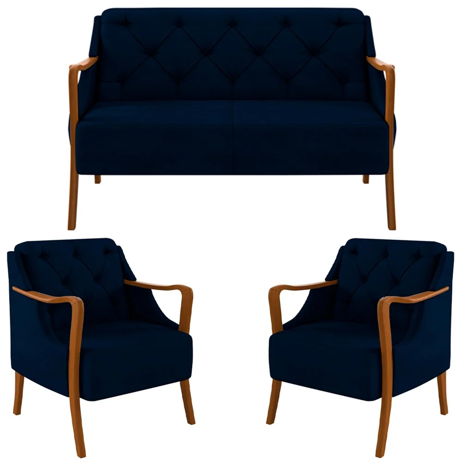 Como é gostoso receber e ser recebido em uma sala de estar bonita e com móveis que dão a sensação de aconchego. Sabendo disso, a Mpozenato traz o Kit Namoradeira e 2 Poltronas Decorativas Lapa Veludo Azul Marinho,para garantir a elegância e sofisticação que você tanto preza.