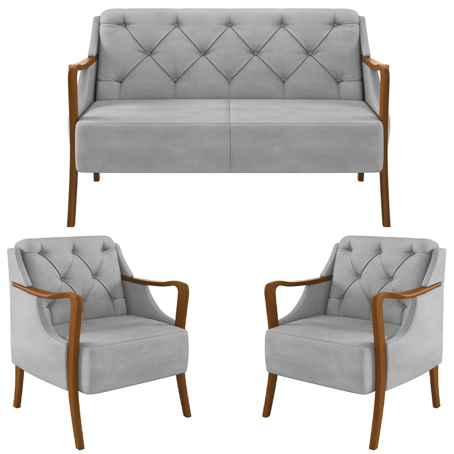 Como é gostoso receber e ser recebido em uma sala de estar bonita e com móveis que dão a sensação de aconchego. Sabendo disso, a Mpozenato traz o Kit Namoradeira e 2 Poltronas Decorativas Lapa Veludo Cinza,para garantir a elegância e sofisticação que você tanto preza.