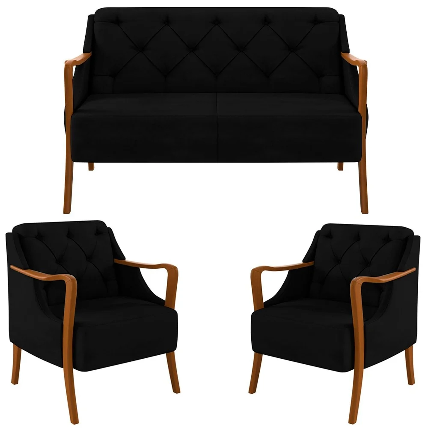 Como é gostoso receber e ser recebido em uma sala de estar bonita e com móveis que dão a sensação de aconchego. Sabendo disso, a Mpozenato traz o Kit Namoradeira e 2 Poltronas Decorativas Lapa Veludo Preto,para garantir a elegância e sofisticação que você tanto preza.