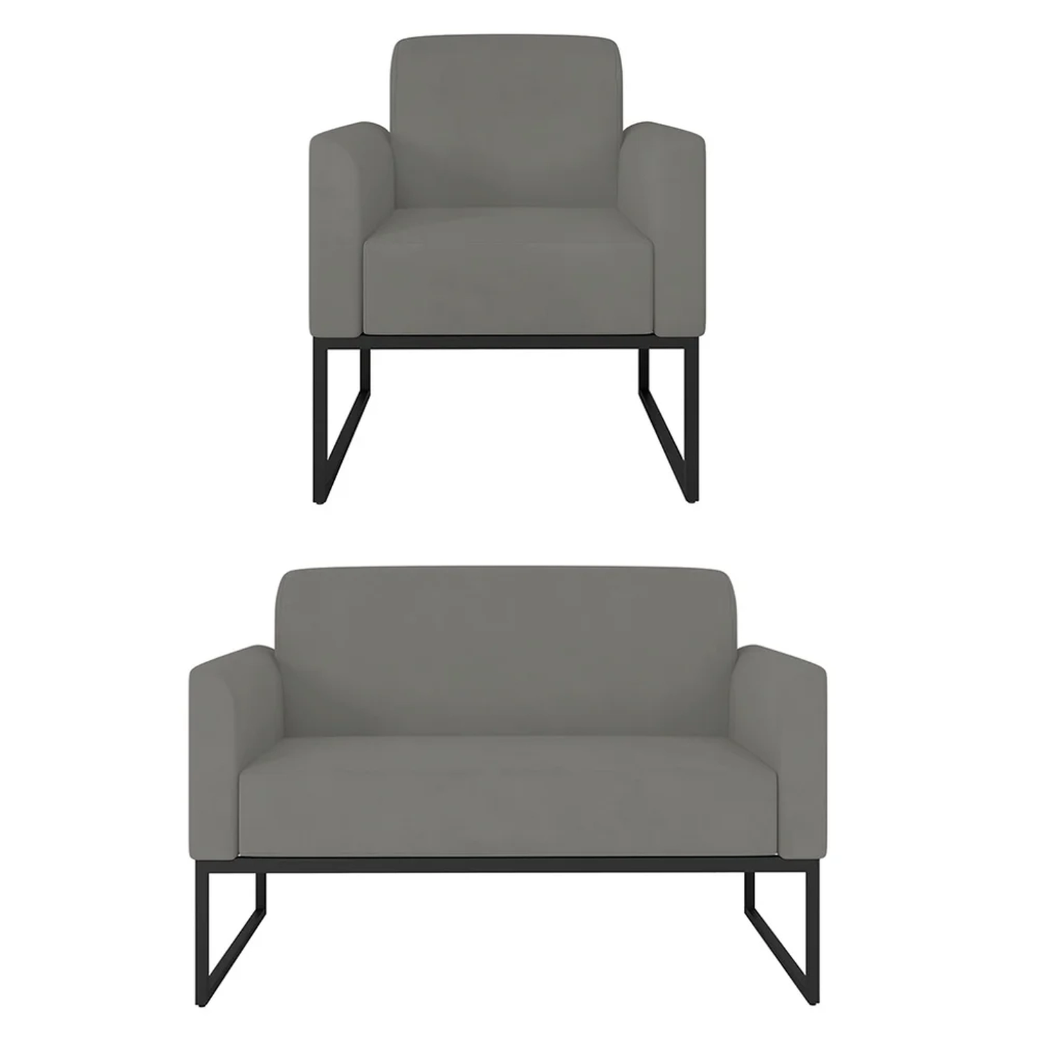 Cada escolha é uma oportunidade de imprimir o que sentimos, e para Sala de Estar desejamos conforto e beleza, para a hora de um bate-papo ou um belo café da tarde. O Kit Namoradeira e 1 Poltrona Decorativa Base Industrial Preta Maressa S08 Suede Grafite - Ibiza pode transformar seu ambiente em algo único, sua estrutura em metal é firme e com fino acabamento, o estofado é macio e traz a leveza que o Estilo Industrial pode fazer em sua essência.