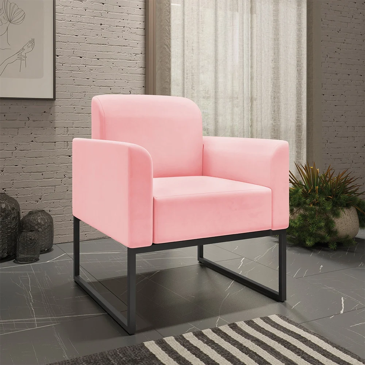 Cada escolha é uma oportunidade de imprimir o que sentimos, e para Sala de Estar desejamos conforto e beleza, para a hora de um bate-papo ou um belo café da tarde. O Kit Namoradeira e 2 Poltronas Decorativas Base Industrial Preta Maressa S19 Suede Rosa Bebê - Ibiza pode transformar seu ambiente em algo único, sua estrutura em metal é firme e com fino acabamento, o estofado é macio e traz a leveza que o Estilo Industrial pode fazer em sua essência.