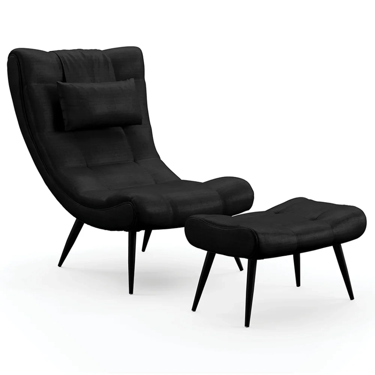 O Kit Poltrona e Puff Para Sala de Estar com Almofada e Pés Palito Lord Facto Dunas Preto, da Ibiza, é um conjunto de móveis elegante e confortável para sua Sala de Estar ou escritório.