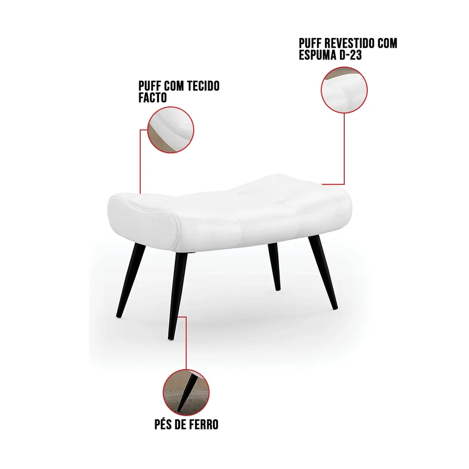 O Kit Poltrona e Puff Para Sala de Estar com Almofada e Pés Palito Lord Facto Dunas Branco, da Ibiza, é um conjunto de móveis elegante e confortável para sua Sala de Estar ou escritório.