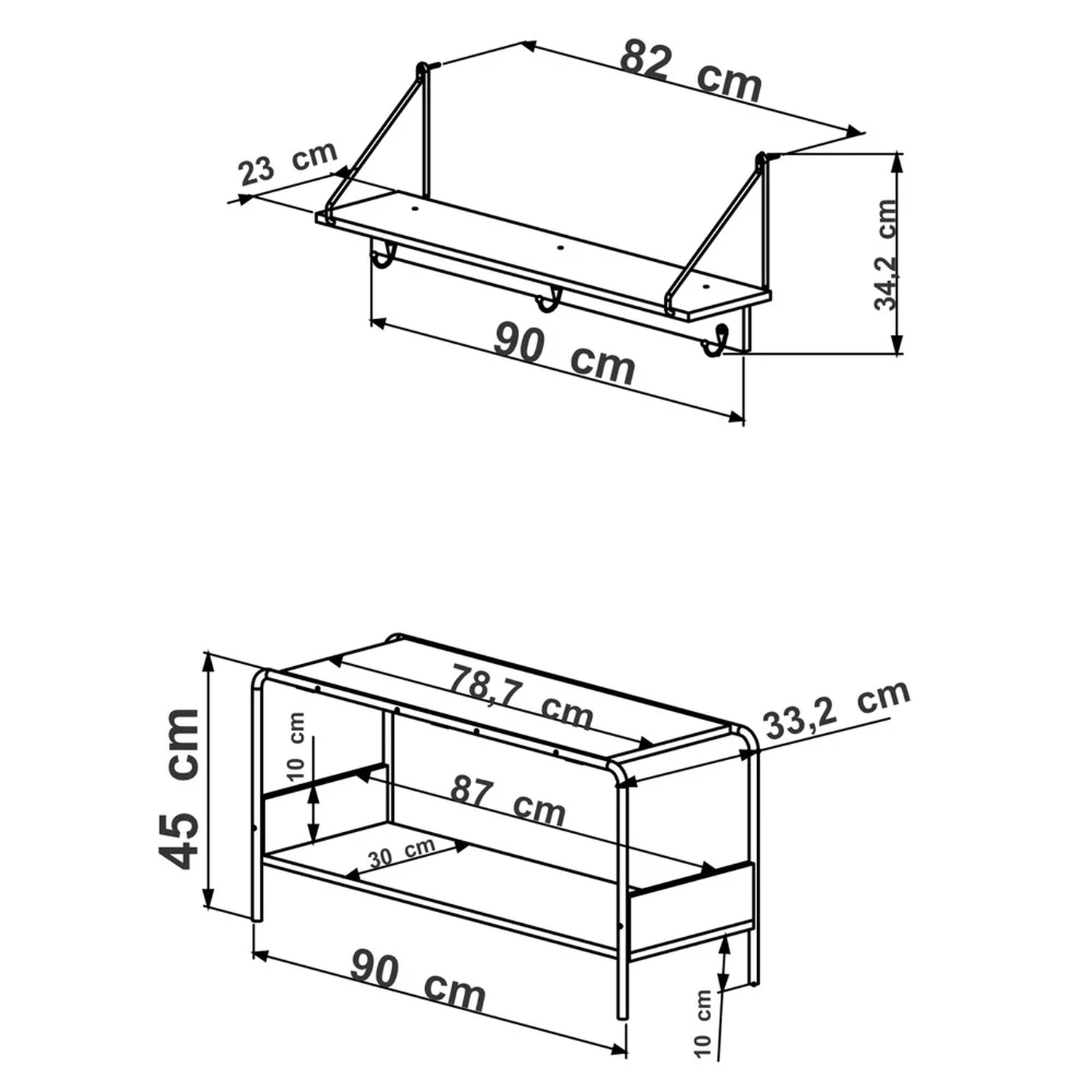 Agora com ao Kit Sapateira Banco da Artesano e a Prateleira Decorativa, seu hall de entrada ficará muito mais elegante e moderno!! Por possuir design objetivo com uma pegada industrial, esse kit é perfeito para complementar a sala de estar, quarto, escritório ou até mesmo na área de serviço, ou seja, é um móvel sinônimo de versatilidade e estilo! Possuem estrutura em MDP de qualidade com acabamento em pintura BP, prolongando a vida útil do produto! Ah, e a prateleira suspensa ainda possui gancho para pendurar roupas e acessórios!!