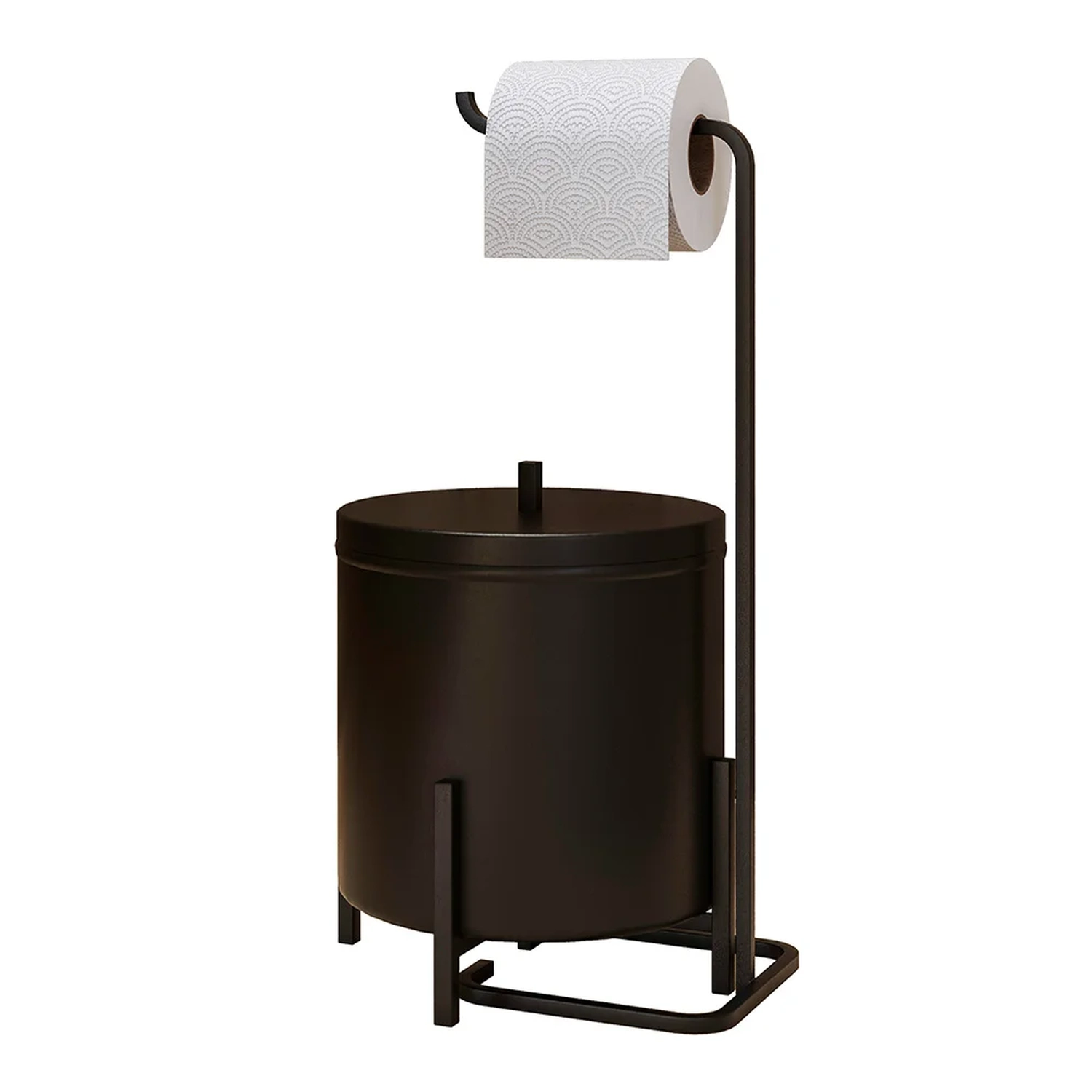 A Lixeira e Porta Papel Higiênico de Chão Luxe em Aço D09 Preto, da Mpozenato é ideal para o seu Banheiro, resistente e sofisticado, conheça!