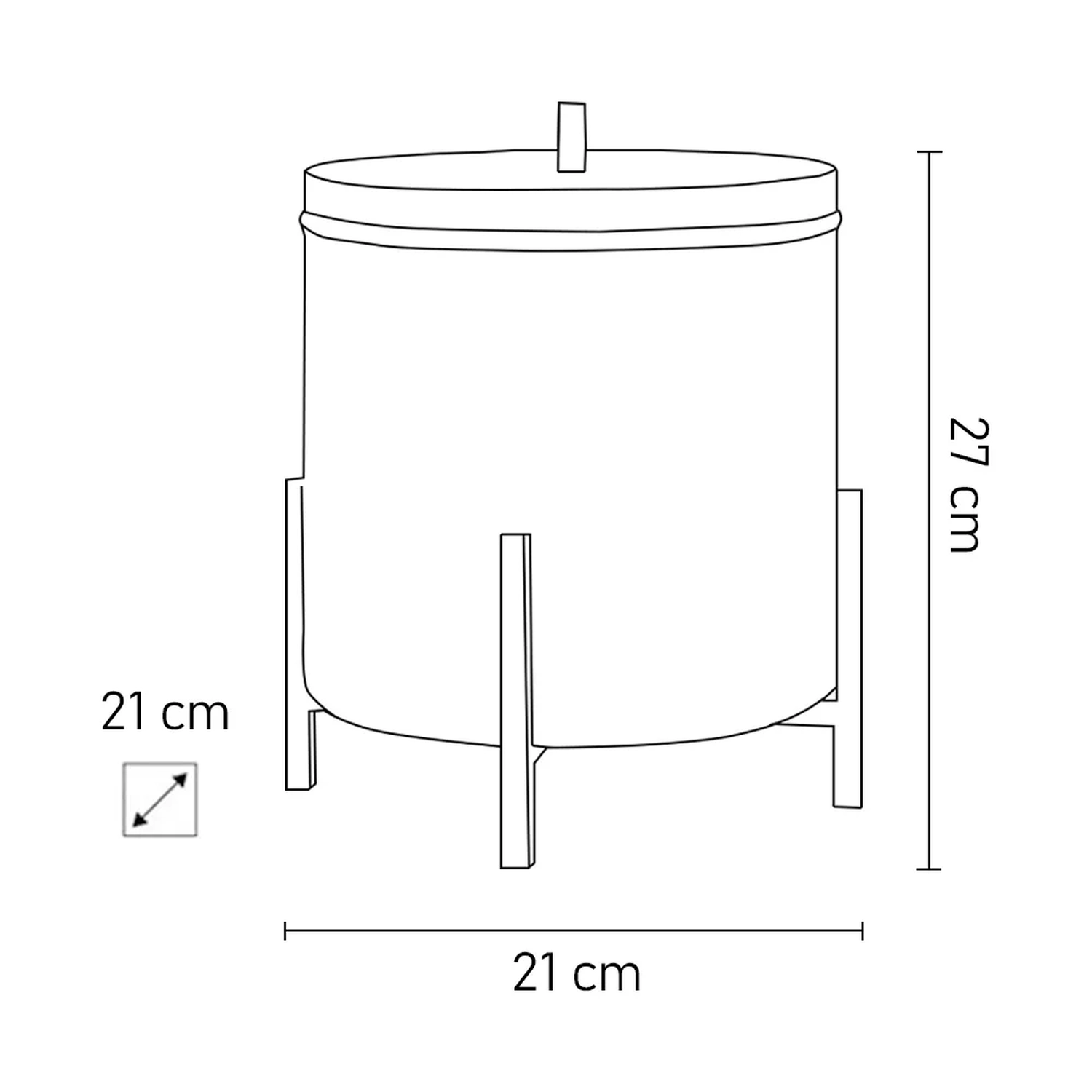 Lixeira: 21 x 27 x 21 cm.