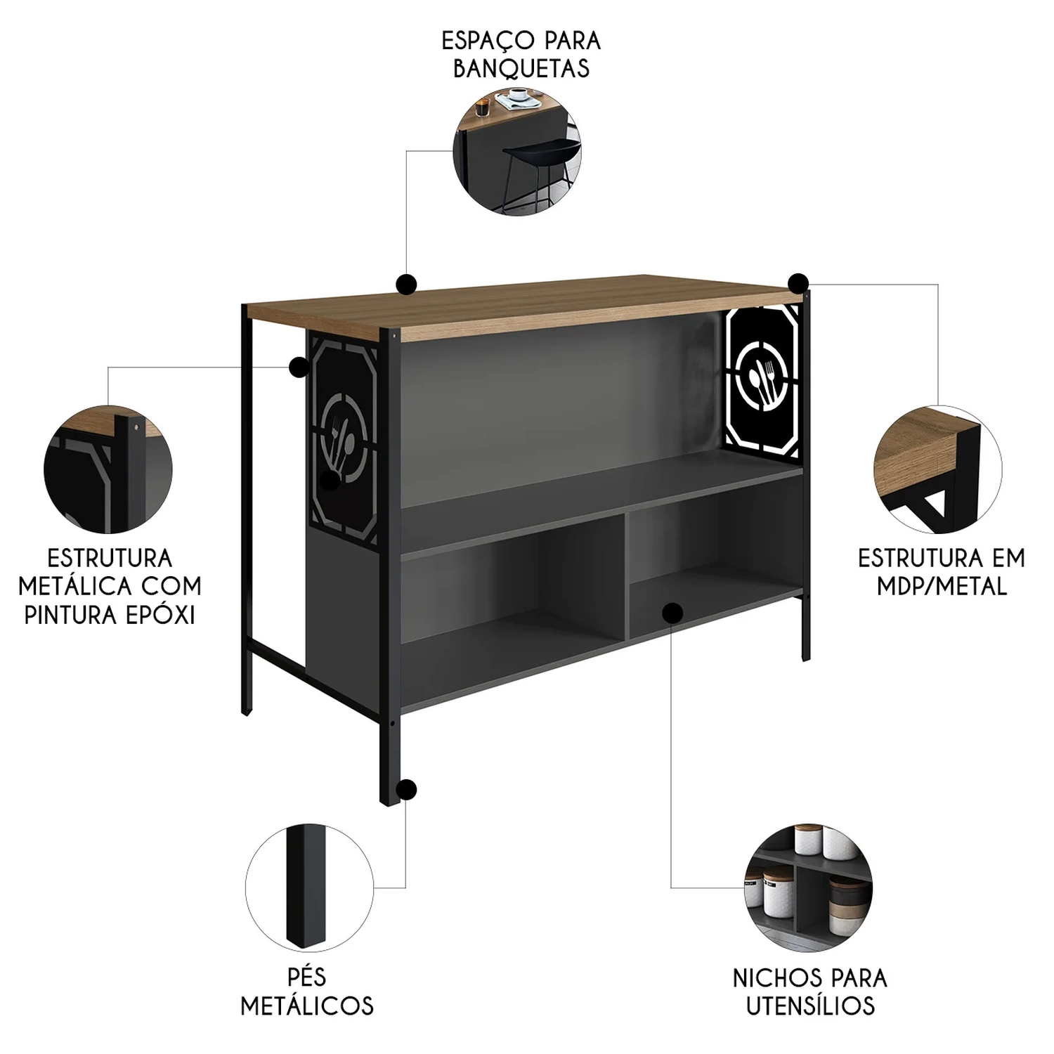 Conteúdo da Embalagem: 1 Bancada Ilha.