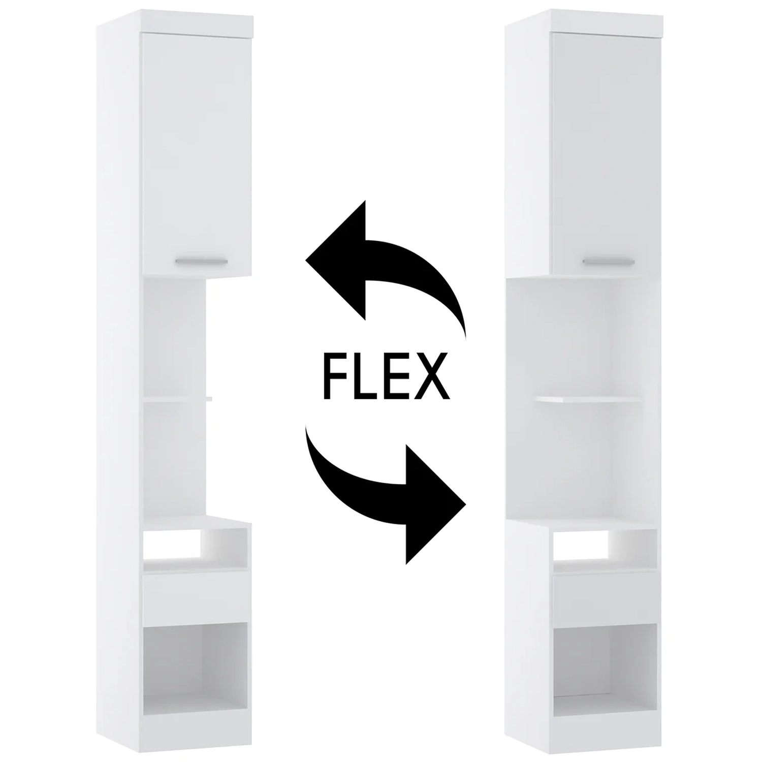 A parte de cima tem uma porta com dobradiças metálicas e um puxador em polímero, além de uma prateleira central que completa a funcionalidade do móvel com muito mais versatilidade.