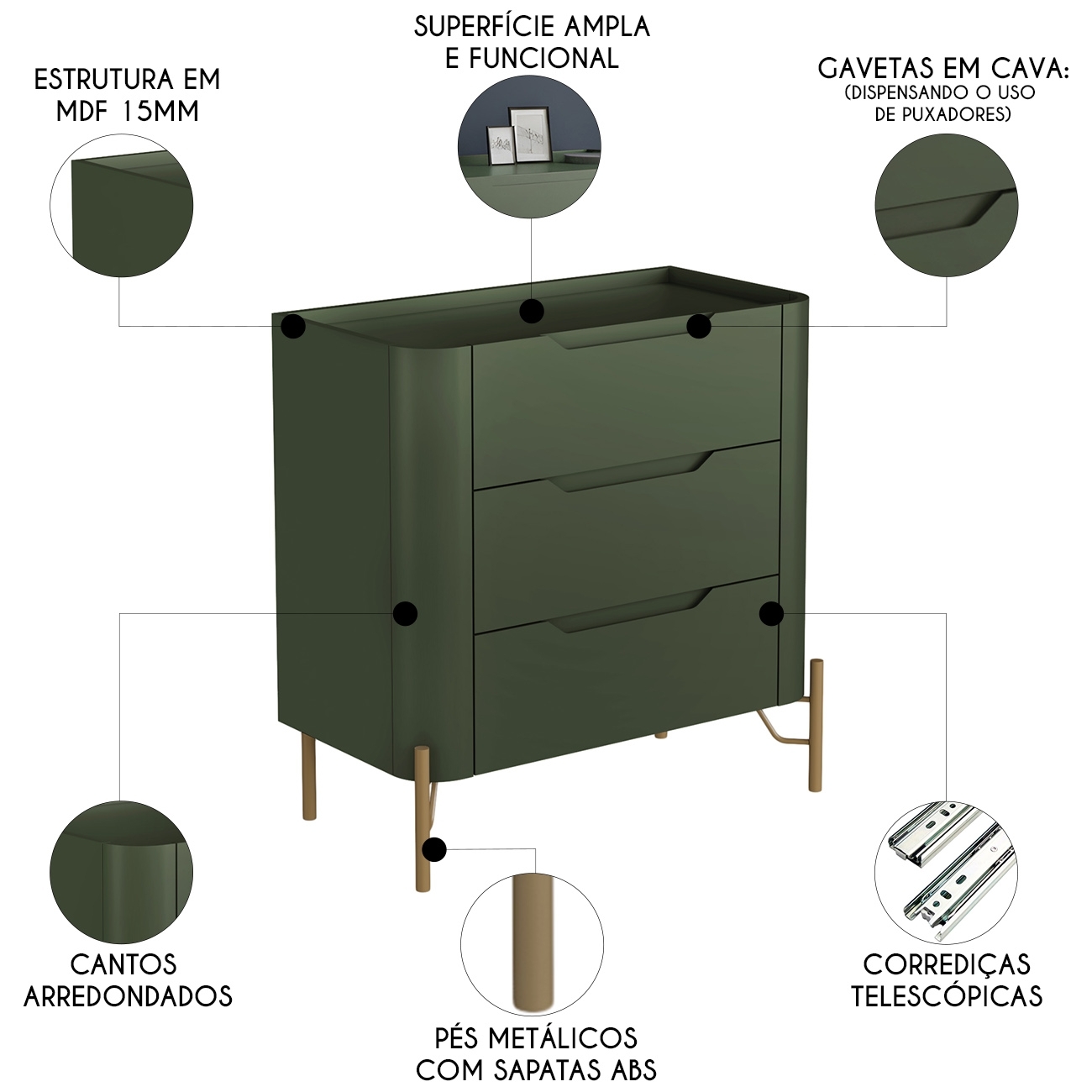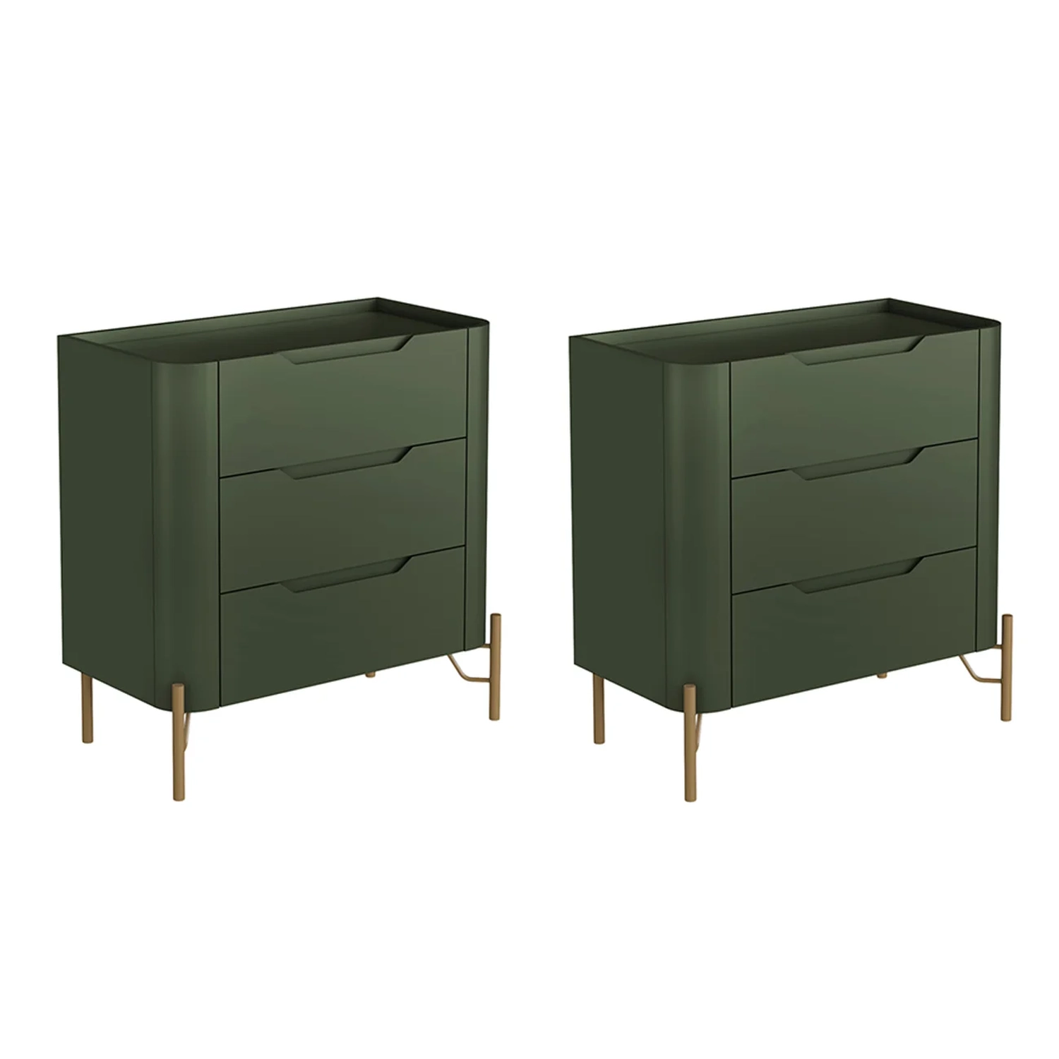 Mesa Cabeceira Para Quarto 68cm Kit 2 Blen Musgo/Dourado I06 - Mpozenato