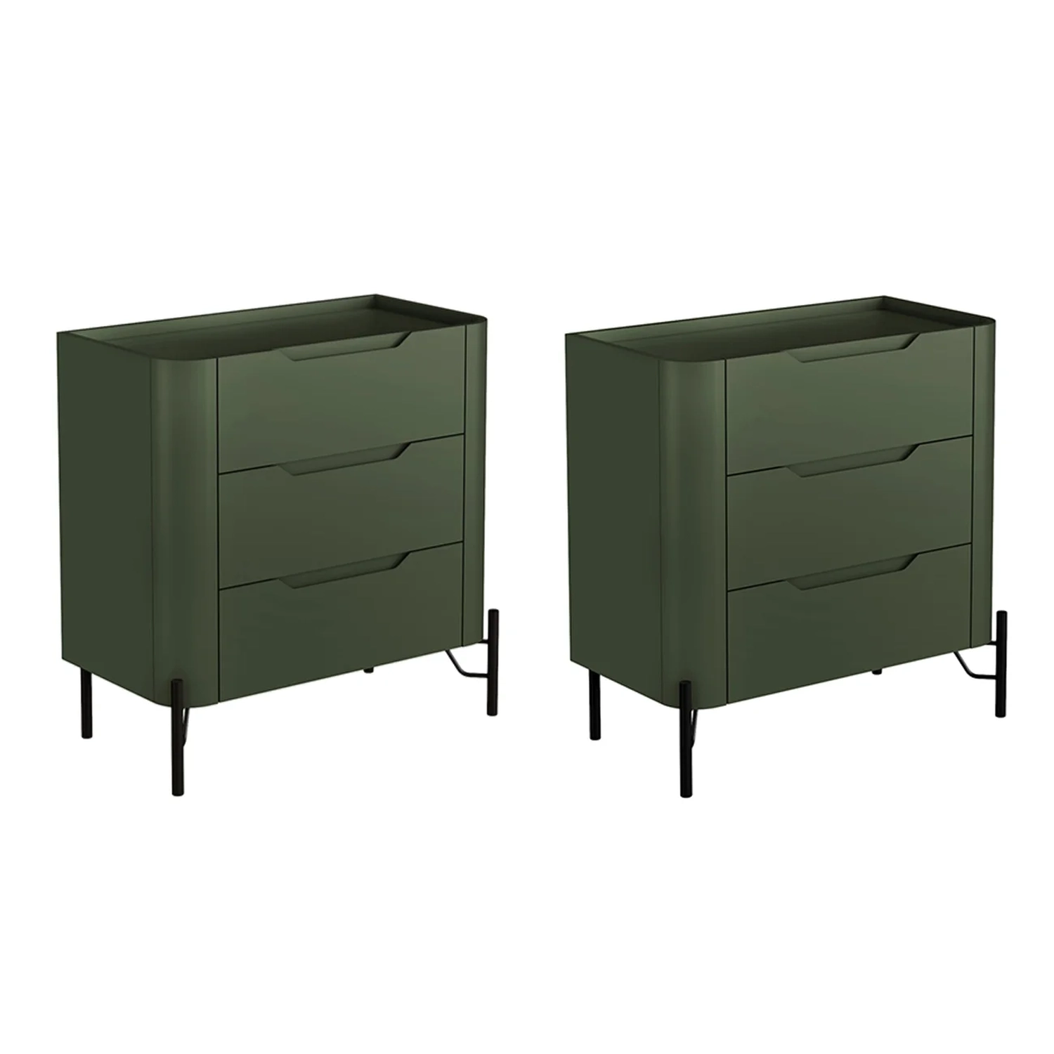 Mesa Cabeceira Para Quarto 68cm Kit 2 Blen Musgo/Preto I06 - Mpozenato