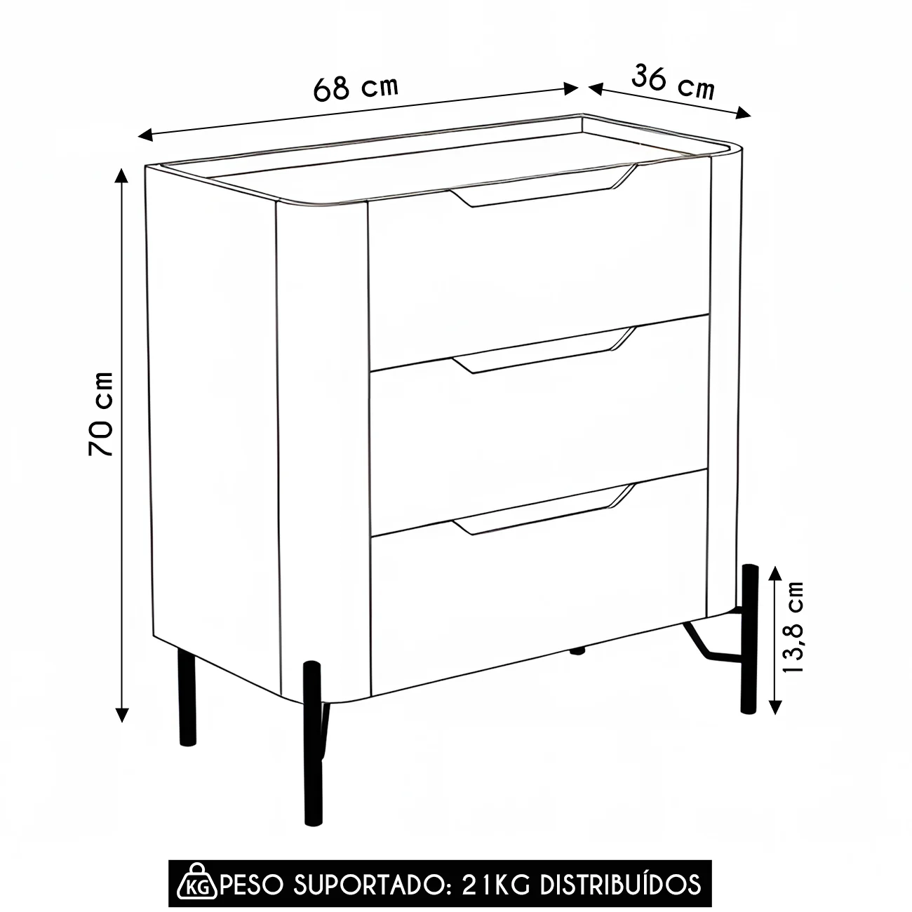 Peso Suportado: 21 Kg distribuídos.