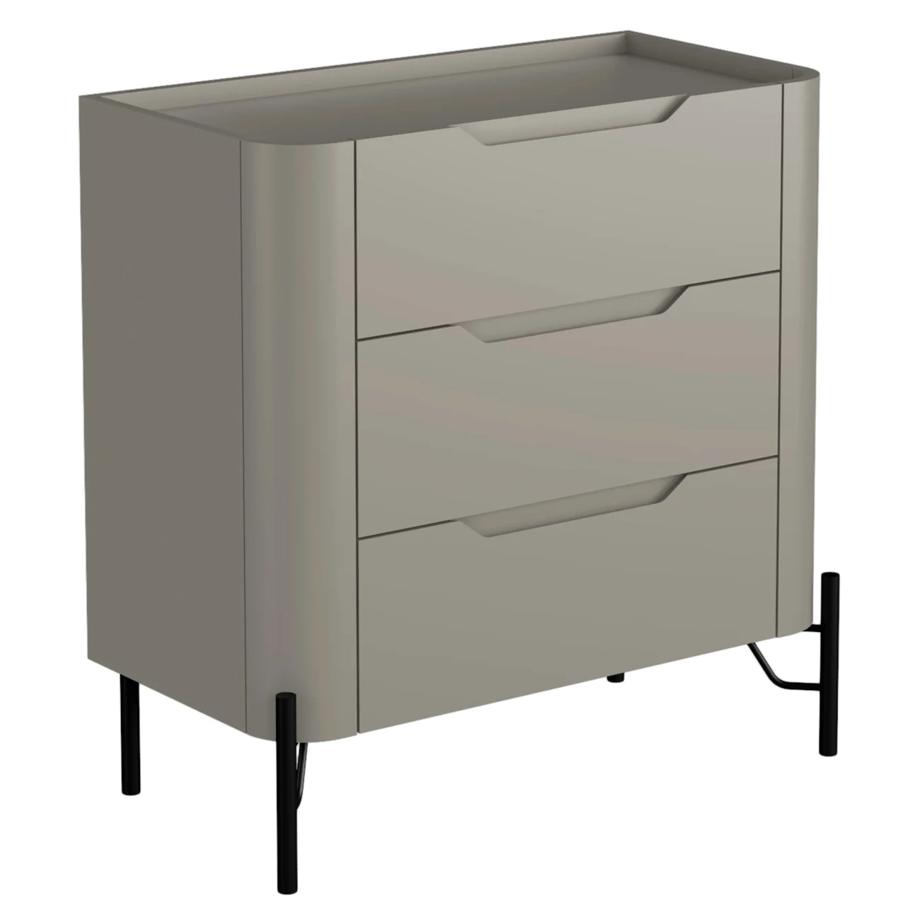 As frentes das gavetas possuem cava usinada, dispensando puxadores tradicionais e conferindo linhas limpas e modernas. As corrediças telescópicas garantem abertura suave, trazendo maior conforto no manuseio, os cantos arredondados complementam o design.