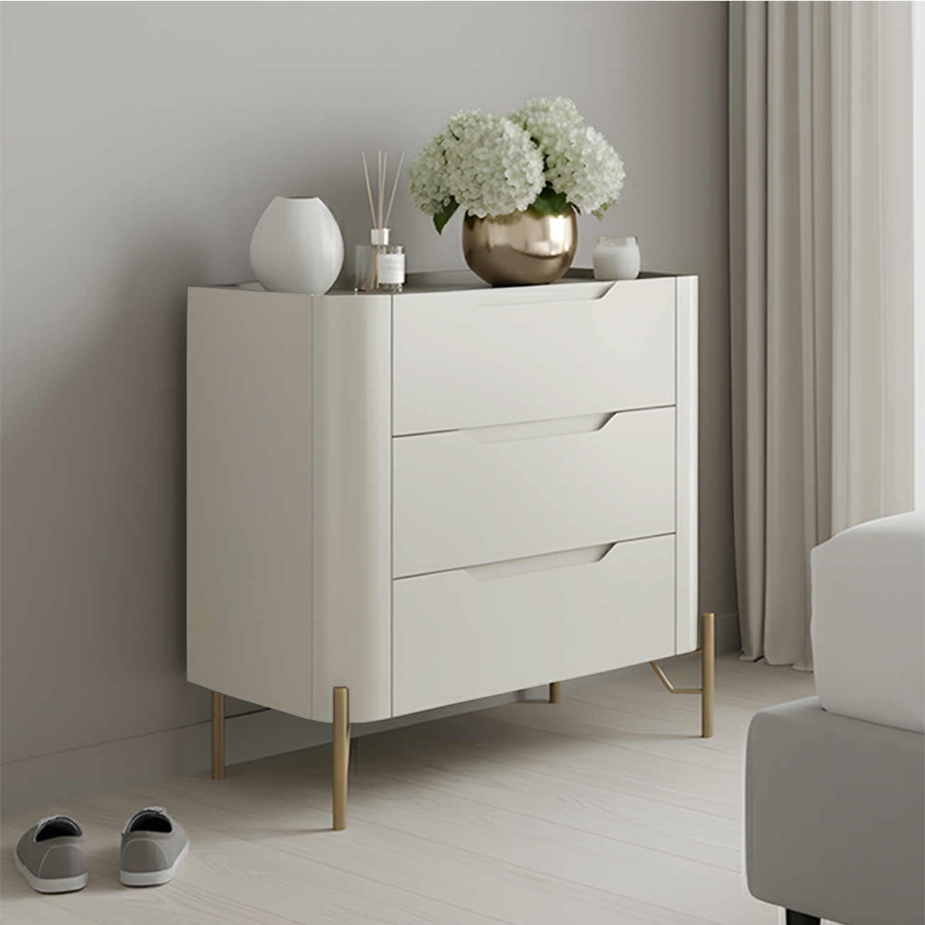Mesa Cabeceira Quarto 68cm 3 Gavetas Blen Luna/Dourado I06 - Mpozenato