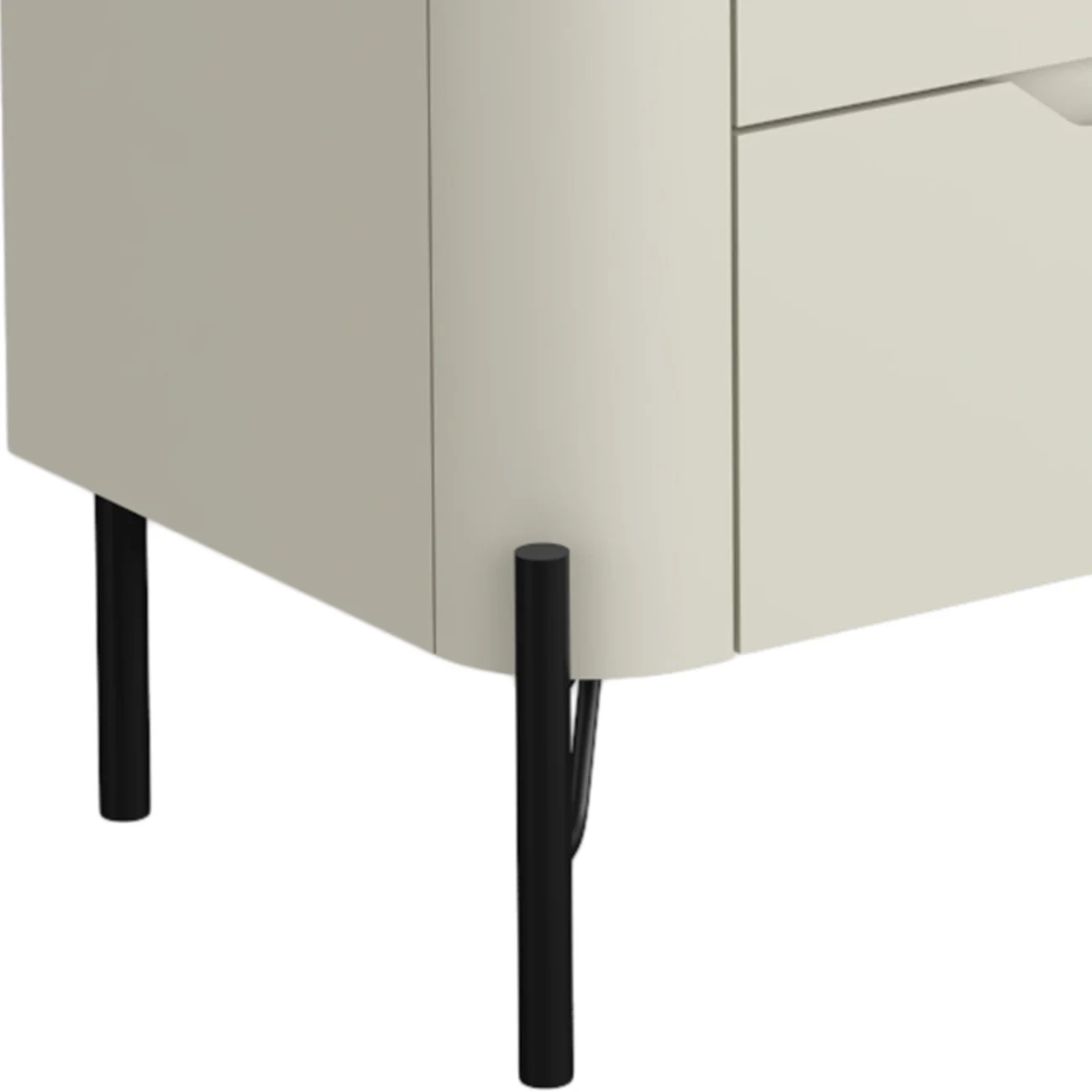 As frentes das gavetas possuem cava usinada, dispensando puxadores tradicionais e conferindo linhas limpas e modernas. As corrediças telescópicas garantem abertura suave, trazendo maior conforto no manuseio, os cantos arredondados complementam o design.