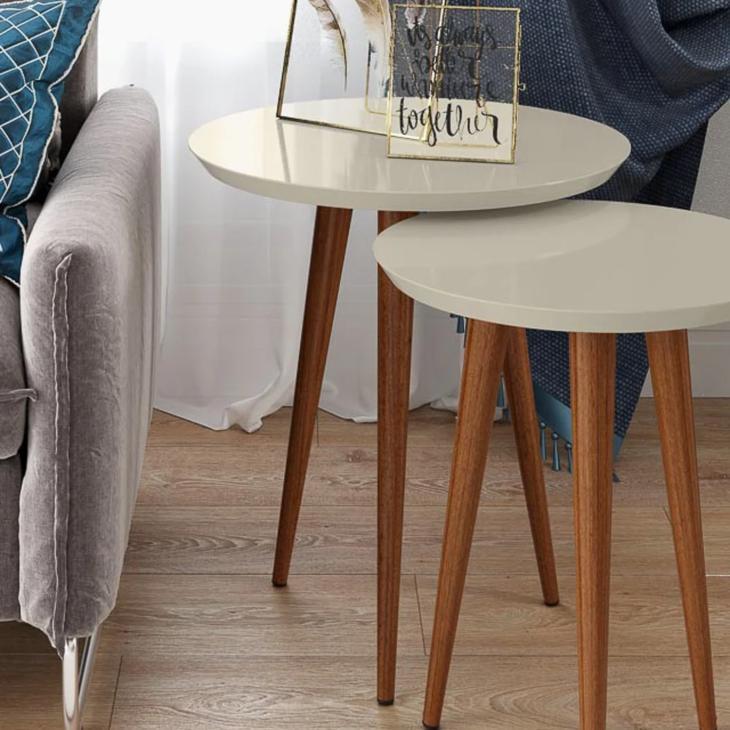 Mesa de Apoio Redonda Pés Madeira Luna 530 Off White - Patrimar 80128