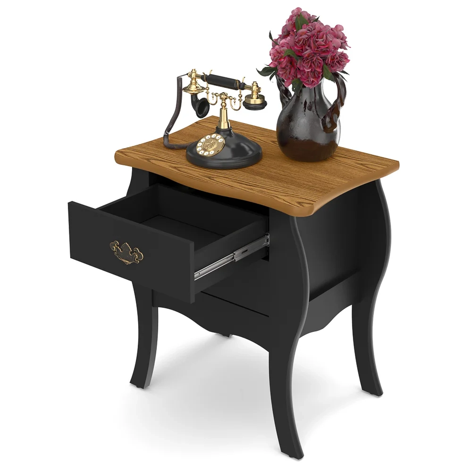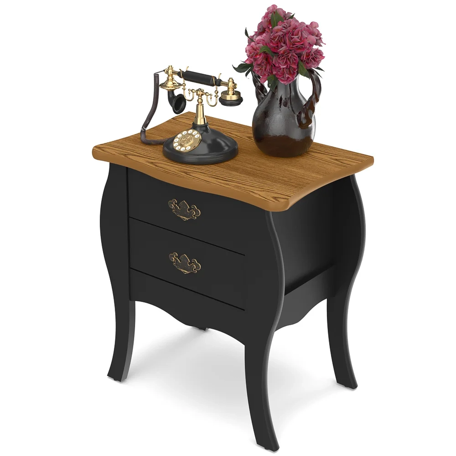 Descubra a elegância clássica com a Mesa de Cabeceira 2 Gavetas Bombe Premier Preto/Cumarú, da Patrimar Móveis, uma adição luxuosa que combina funcionalidade e estilo para qualquer ambiente.