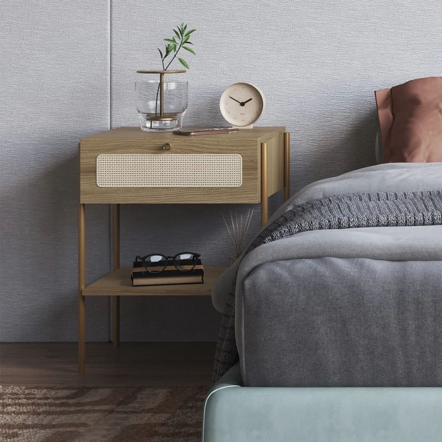 A Mesa de Cabeceira Com 1 Gaveta Pé Metal Arlo A10 Hanover/Dourado, da Mpozenato, é a escolha perfeita para adicionar um toque de estilo ao seu quarto.