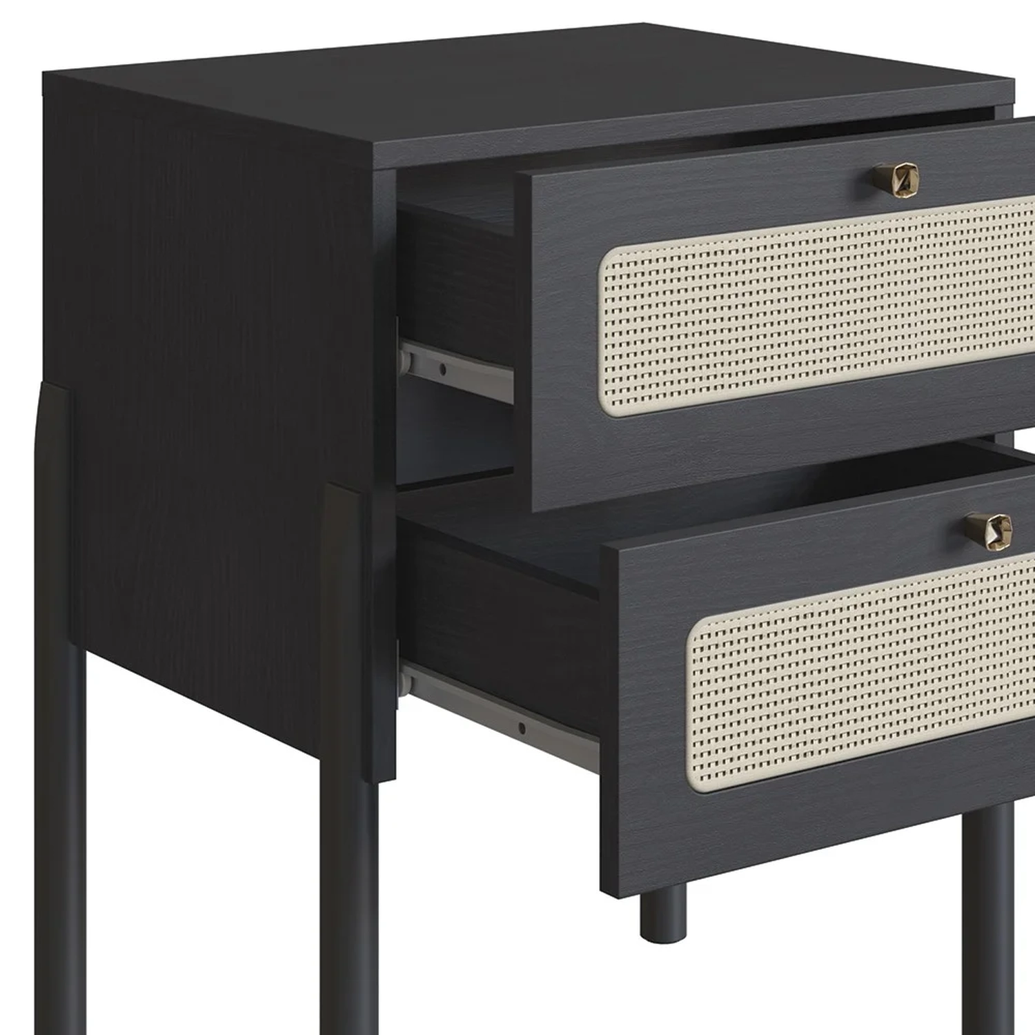 A Mesa de Cabeceira Com 2 Gavetas Pés Madeira Arlo A10 Nero/Preto, da Mpozenato, é a escolha perfeita para adicionar um toque de estilo ao seu quarto.