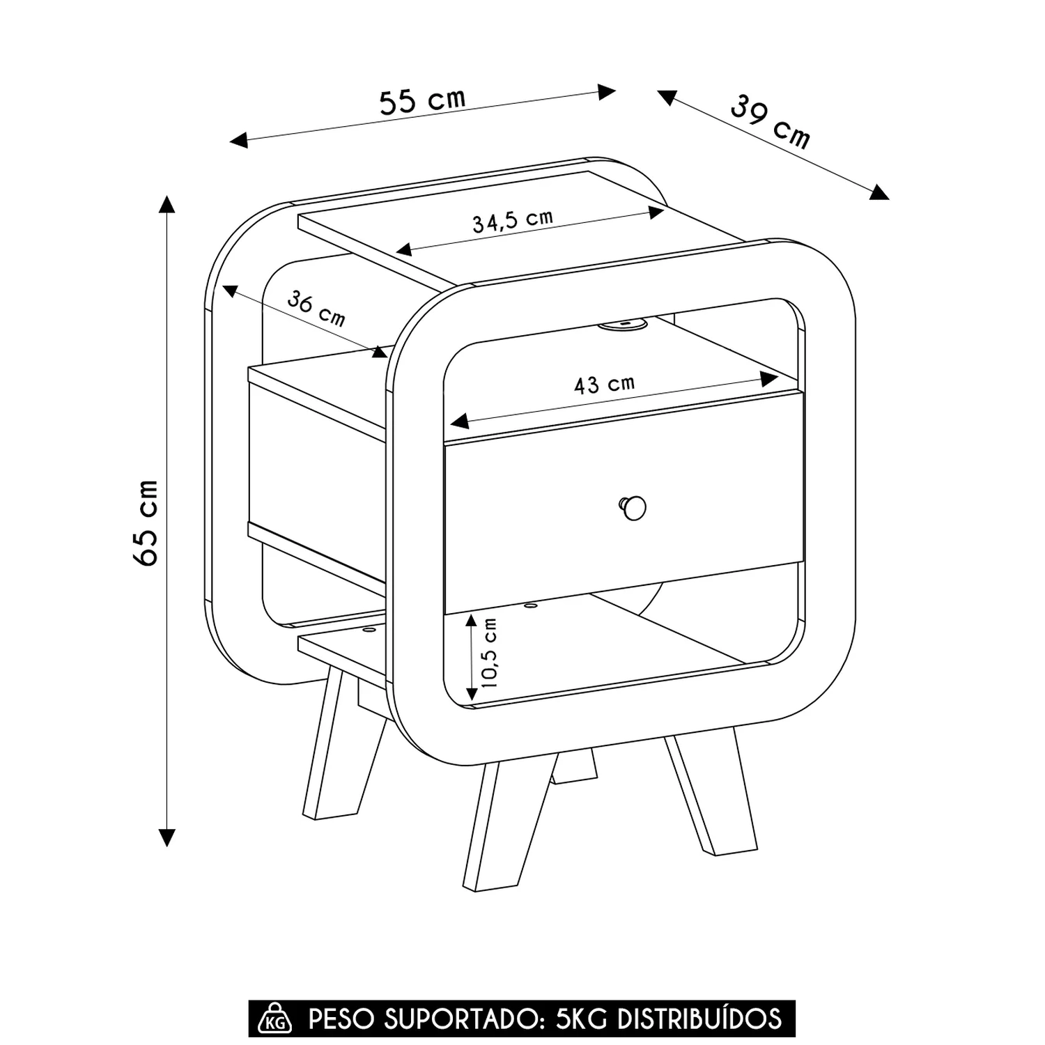 Peso Suportado: 5 Kg distribuídos.