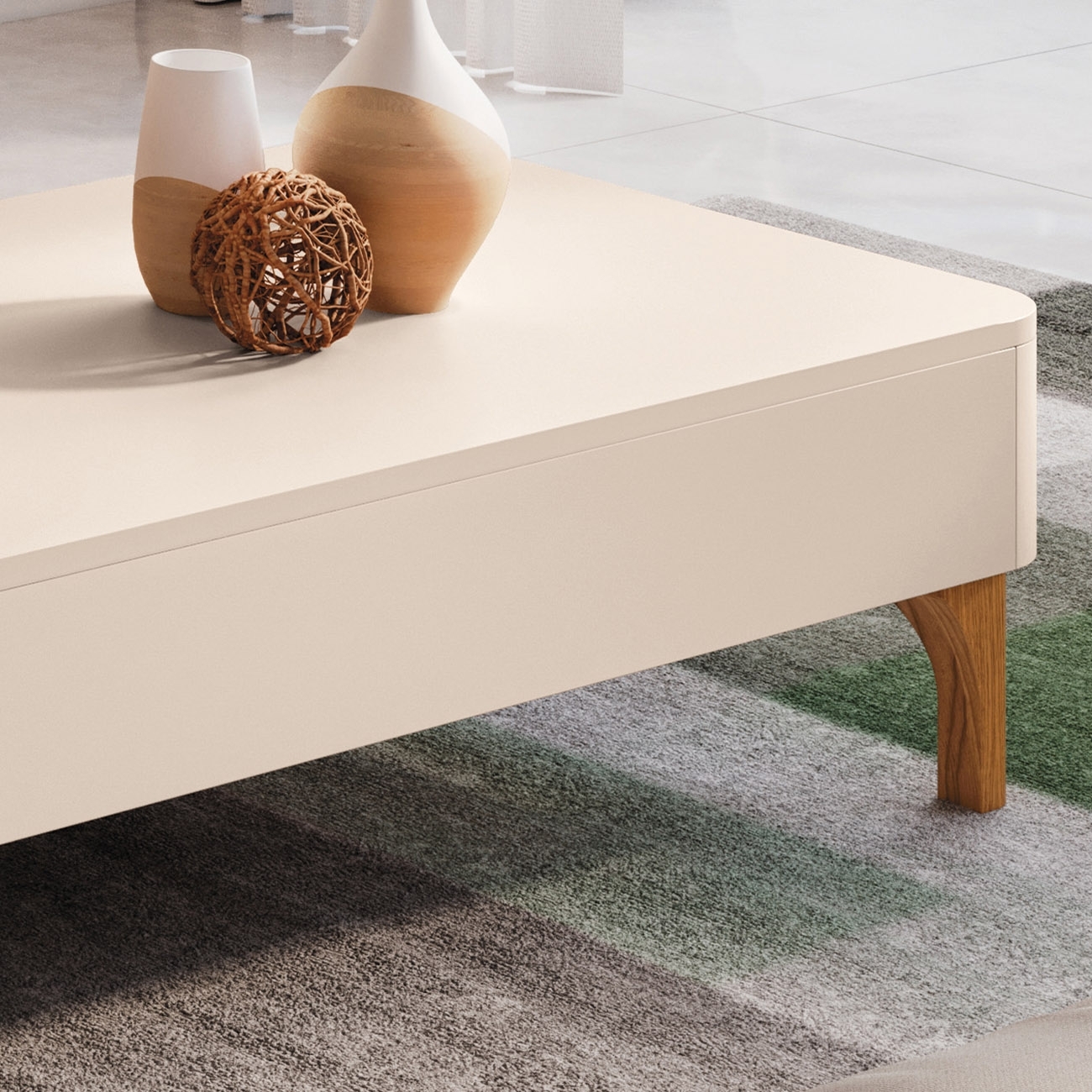 Mesa de Centro Baixa Para Sala Pé Madeira Liz Off White - HB Móveis
