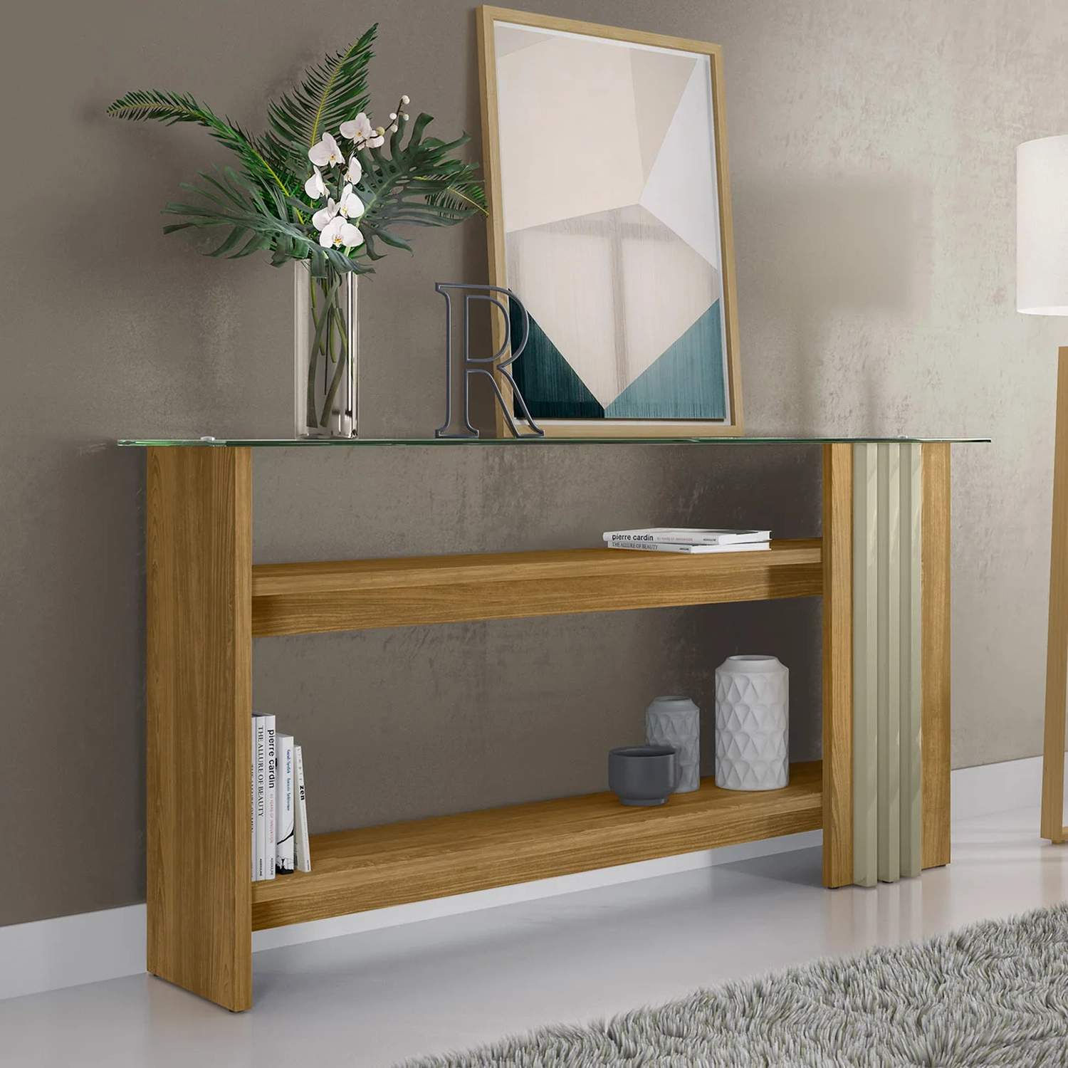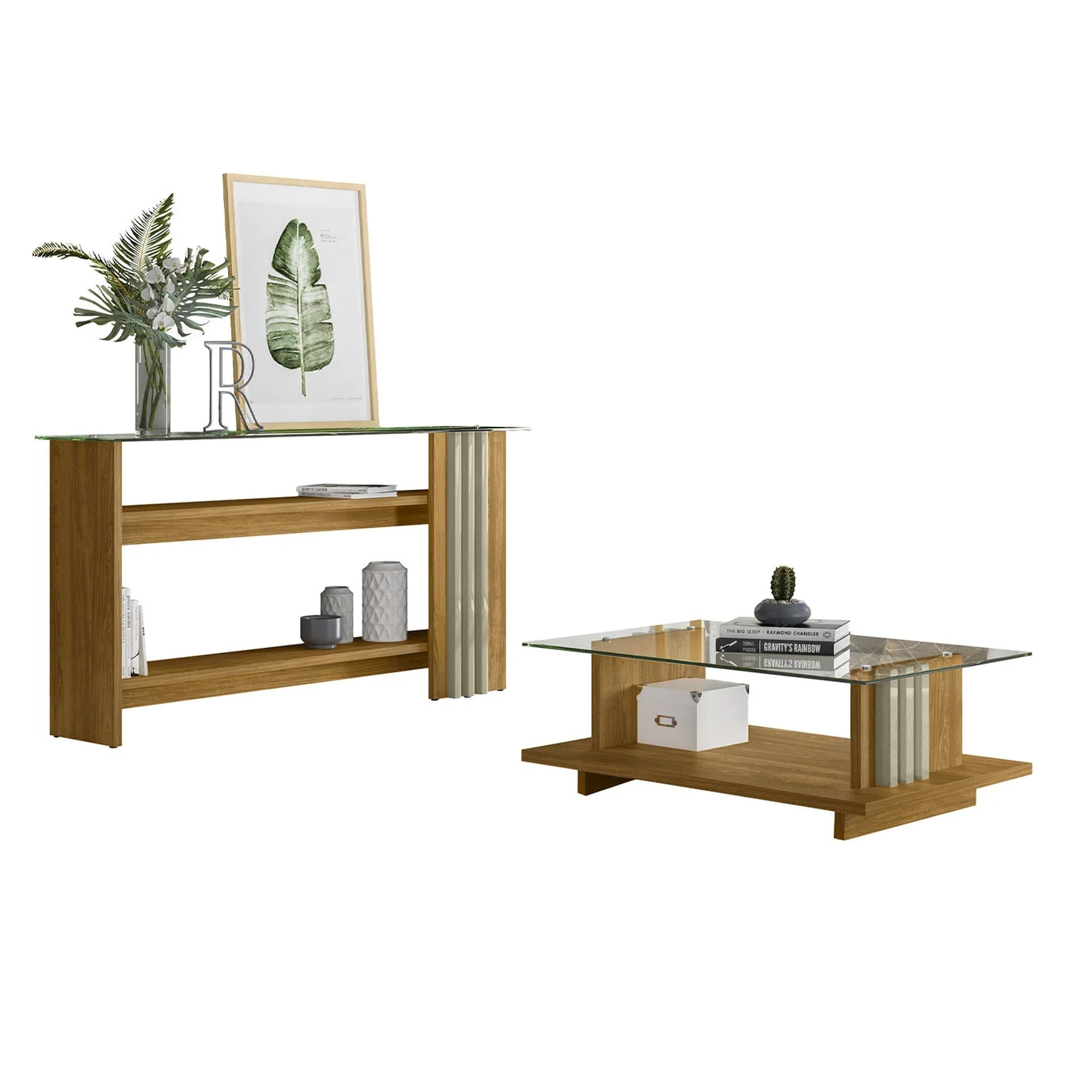 O Mesa de Centro e Aparador Ripado Fire Z10 Cumaru/Opala, da Mpozenato, é a combinação perfeita de sofisticação e funcionalidade para sua Sala de Estar.