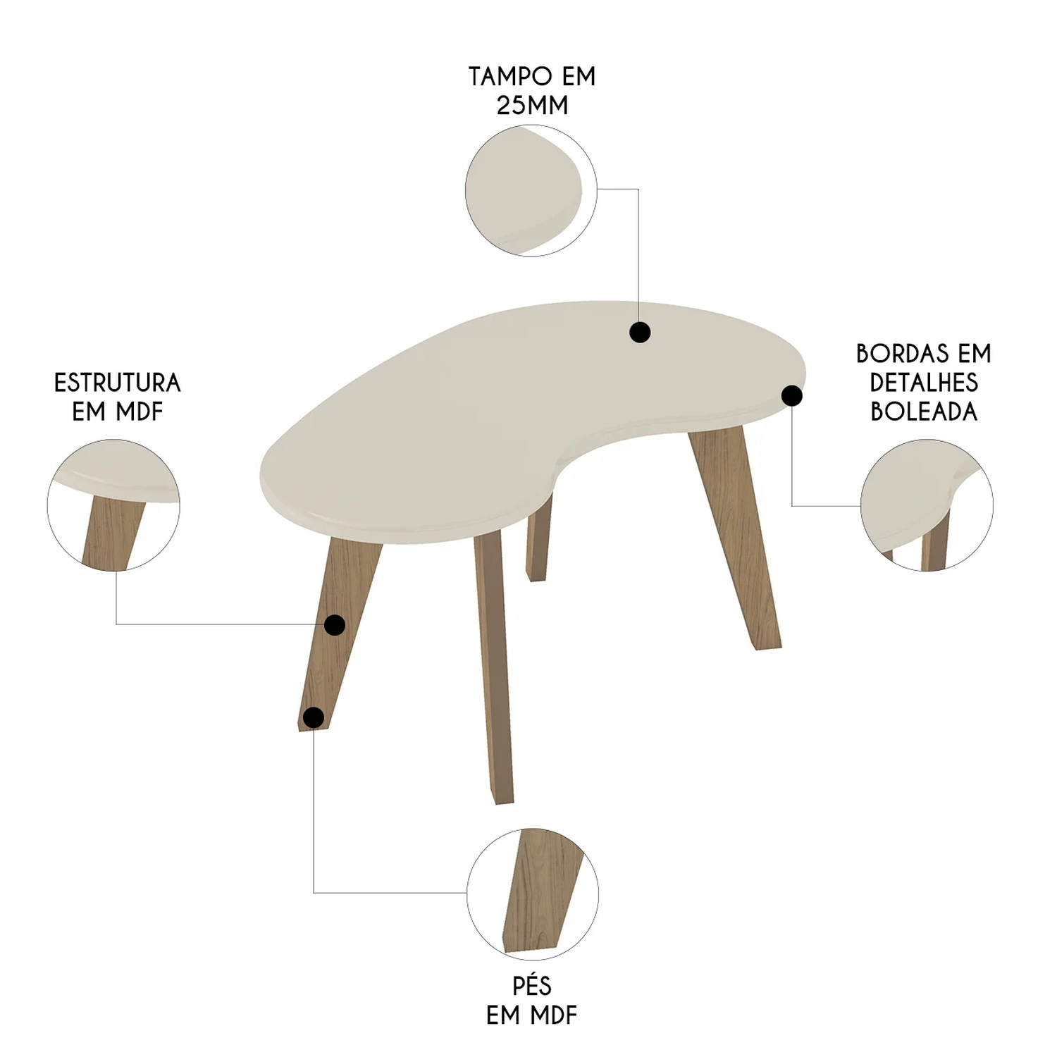 Mesa de Centro Orgânica 90cm Para Sala Cassia Off White A09 - Mpozenato
