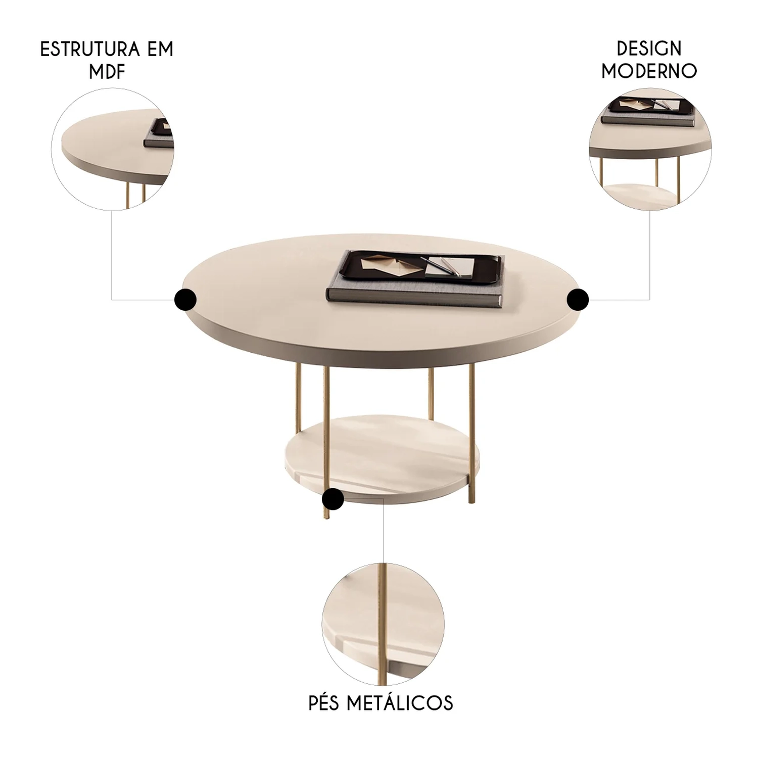 A Mesa de Centro Redonda Pés Metálicos Sky Off White, da HB Móveis tem um design sofisticado e contemporâneo, combinando diferentes materiais de forma harmoniosa, criando uma peça leve e ao mesmo tempo marcante.